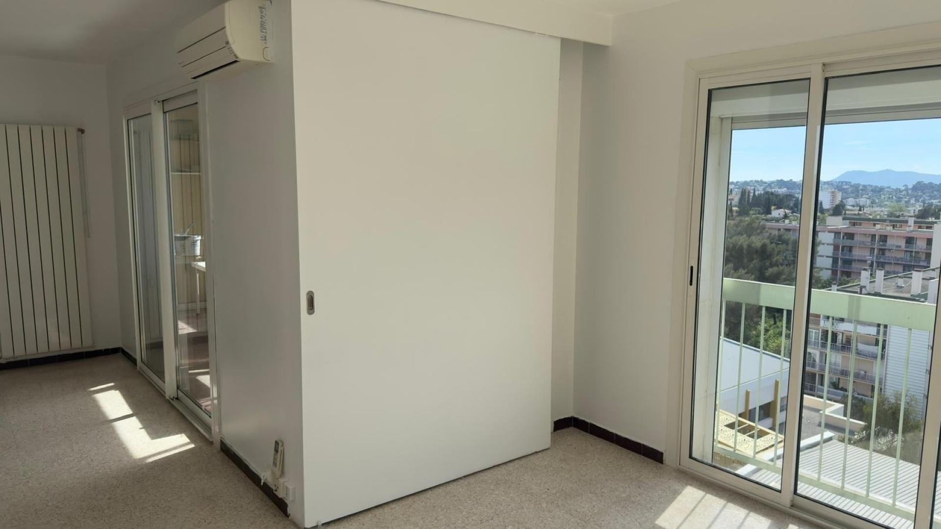 Cet appartement de 74 m², récemment rénové, est situé au 9ème Etage. Il se compose d'un hall d'entrée, d'une salle de séjour lumineuse, d'une loggia (d'environ 10 m²) offrant une vue dégagée, de trois chambres spacieuses dont une avec balcon, d'une cuisine équipée, d'un cellier, d'une salle d'eau et d'un WC séparé.