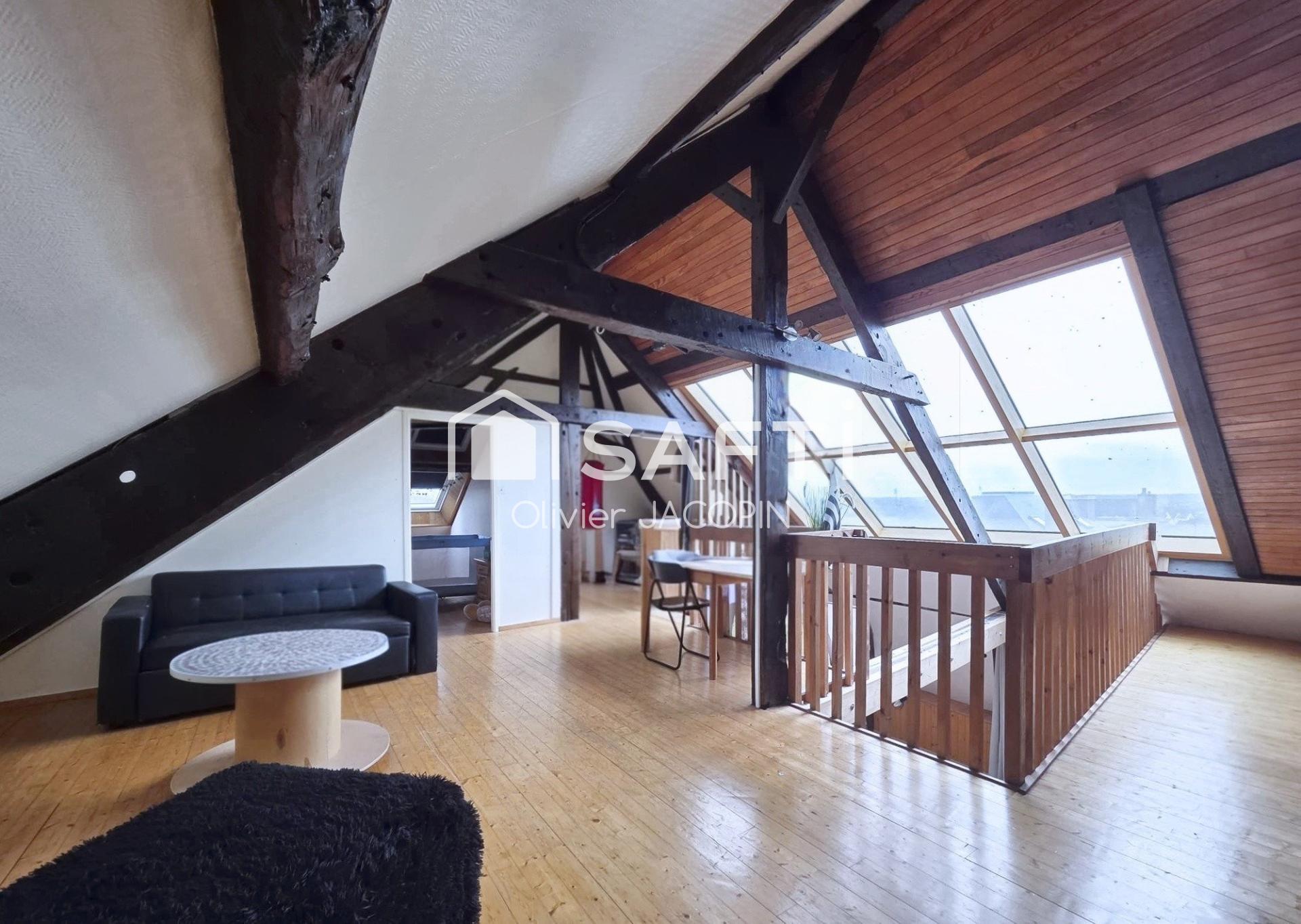 En plein cœur de Lannilis, laissez-vous séduire par un duplex unique aux volumes généreux et au fort potentiel !