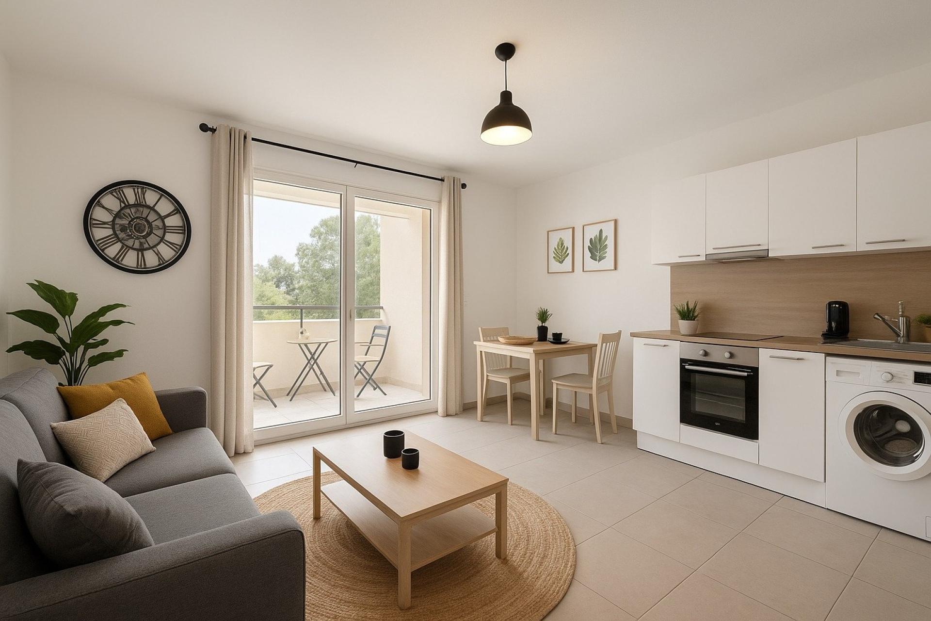 L’appartement se compose :d’une entrée avec rangement, d’un séjour lumineux ouvrant sur la terrasse, d’une cuisine ouverte entièrement équipée, d’une chambre cosy, d’une salle de bains avec WC.