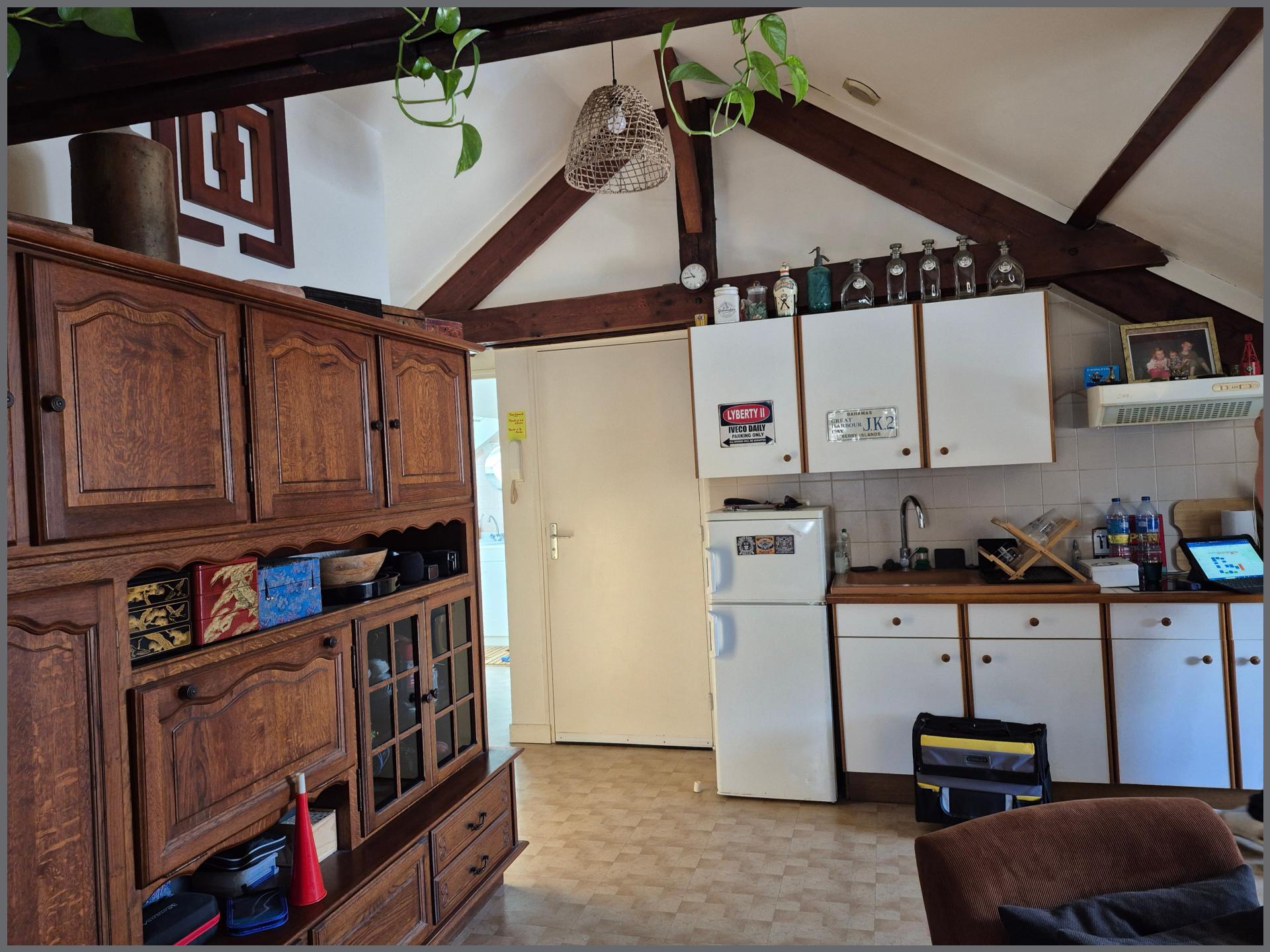 Au sein d'une petite copropriété à faibles charges, ce confortable appartement de 33 m², en parfait état, se trouve au deuxième et dernier étage. Il se compose d'une belle pièce de vie lumineuse agrémentée de poutres apparentes, de deux chambres, d'une salle d'eau et d'un WC séparé. Prêt à habiter, ce bien ne nécessite aucun gros travaux, offrant ainsi le parfait équilibre entre charme de l'ancien et confort contemporain pour une qualité de vie agréable et pratique.