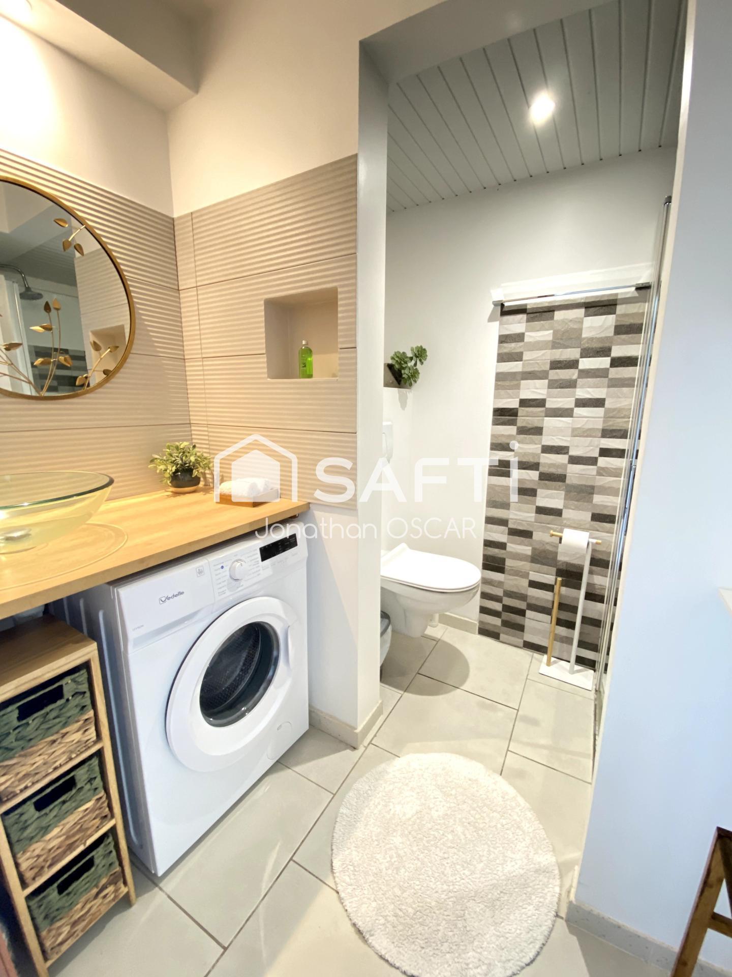 Cet appartement de 25 m2 (19 m2 loi Carrez), au R+1 d'une résidence hôtelière sécurisée, située dans un quartier très recherché, est composé d'un espace de vie lumineux, aéré et climatisé avec un grand lit et un canapé convertible, une cuisine ouverte sur la terrasse et une salle d'eau avec douche à l'italienne et WC.