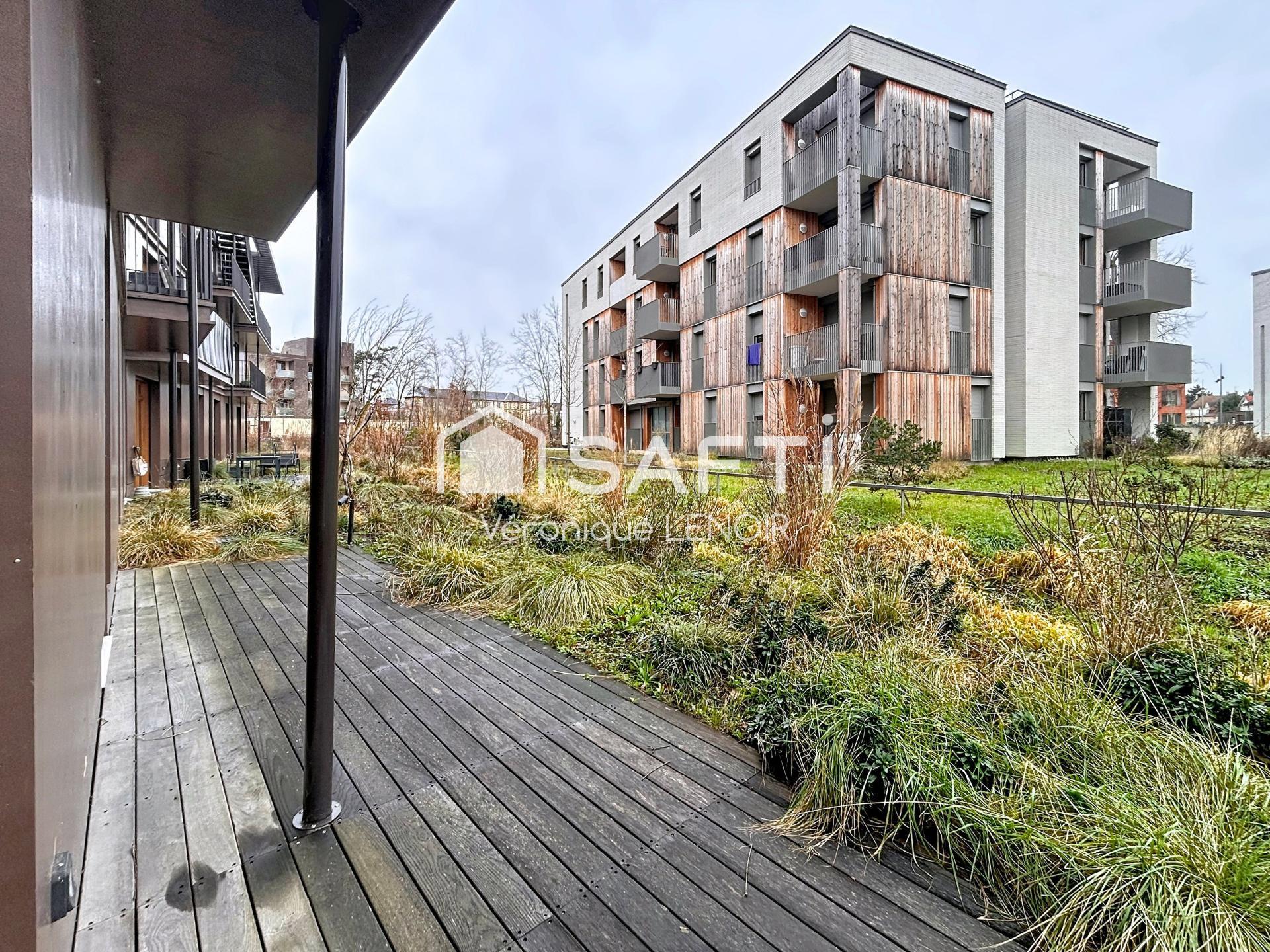 Au milieu de l'éco quartier arboré et résidentiel du VESINET - quartier Princesse, à quelques minutes à pied des commerces de proximité, des écoles et des espaces verts, vous serez séduits par l' agencement fonctionnel de cet appartement de 81m2 (PMR) situé au rez de chaussée sur 2 étages,