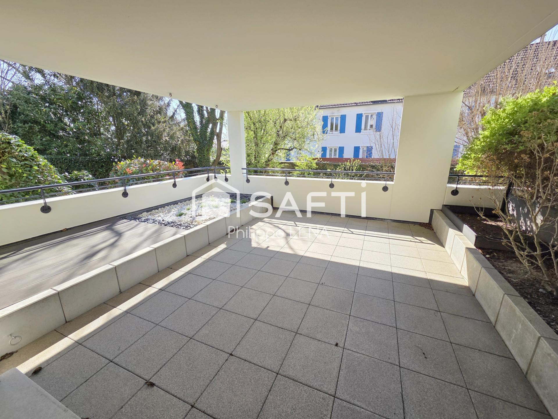 Résidence cossue, grande terrasse, porte blindée, chauffage au sol, volets électriques, belles finitions, possibilité achat garage en option