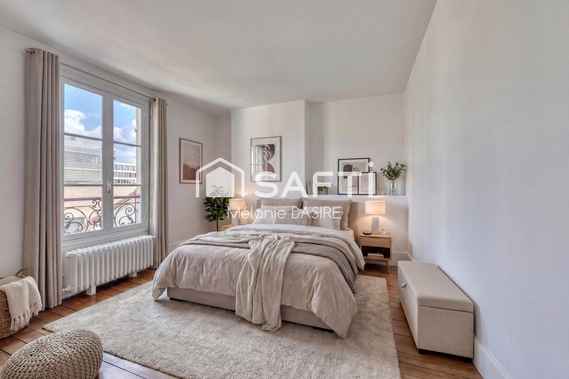 Cet appartement vous séduira par son charme grâce à son magnifique parquet ancien, il se compose d'une pièce de vie lumineuse, de deux grandes chambres de 14m2 chacune, d'une cuisine aménagée, d'une salle de bain et d'un WC séparé.