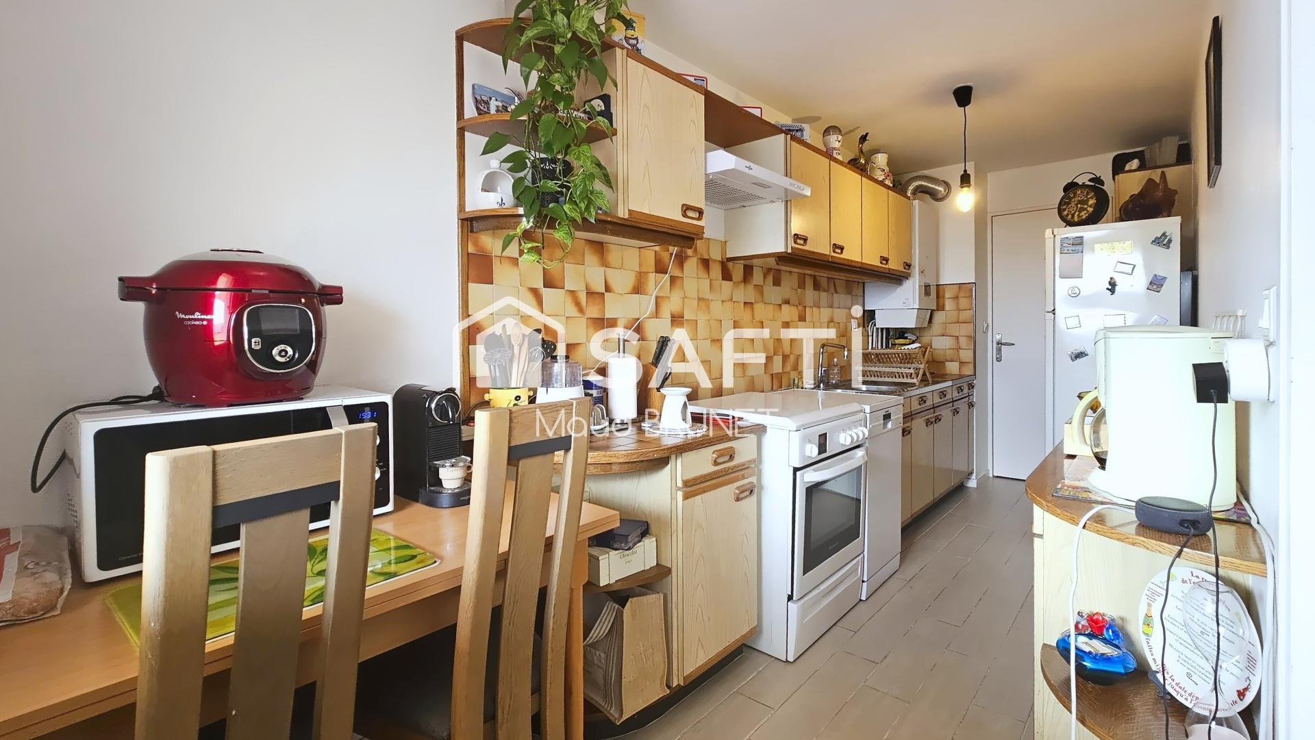 L’appartement s’ouvre sur une entrée avec placard, optimisant le rangement dès l’arrivée. Le séjour lumineux, agréablement agencé, communique avec la cuisine et donne accès à un balcon, apportant un espace extérieur appréciable. La chambre, spacieuse avec ses 14 m², assure confort et tranquillité. Une salle de bain et des toilettes indépendantes complètent l’agencement fonctionnel de ce bien.