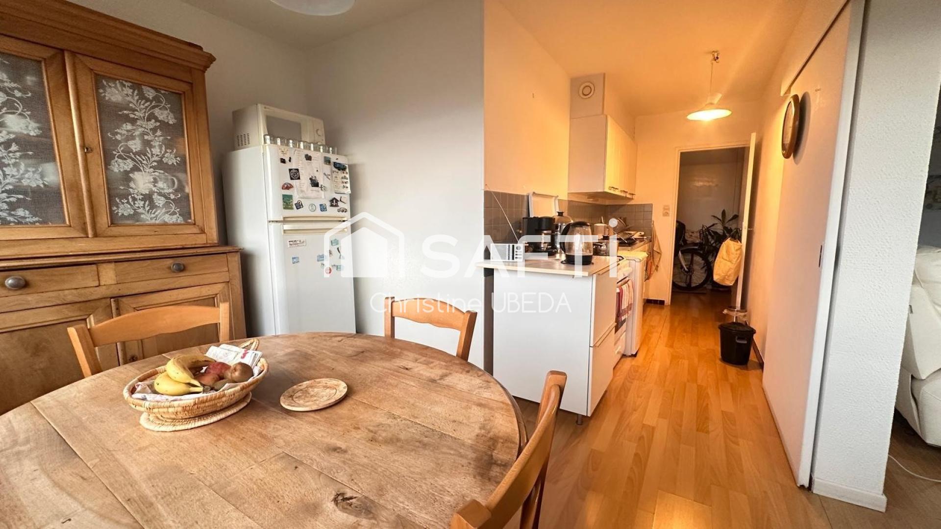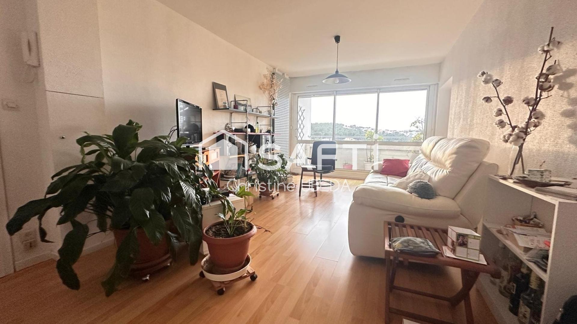 Appartement T4 lumineux de 79.52 m² Carrez + balcon + cave au 8ème étage permettant une belle vue dégagée, traversant, dans une résidence calme et très bien entretenue. Il se compose d'un agréable séjour ouvrant sur un balcon, trois chambres, une cuisine avec coin repas, une salle d'eau avec douche italienne moderne, un WC séparé ainsi que de nombreux rangements et une loggia fermée d'environ 3m2. Une cave de 4 m² vient compléter le bien et un garage fermé peut être acquis. Les charges de copropriété incluent le chauffage collectif, l'eau froide ainsi que l'entretien complet (espaces verts et ménage) de la copropriété et des parties communes, offrant un confort et une maîtrise du budget appréciables.