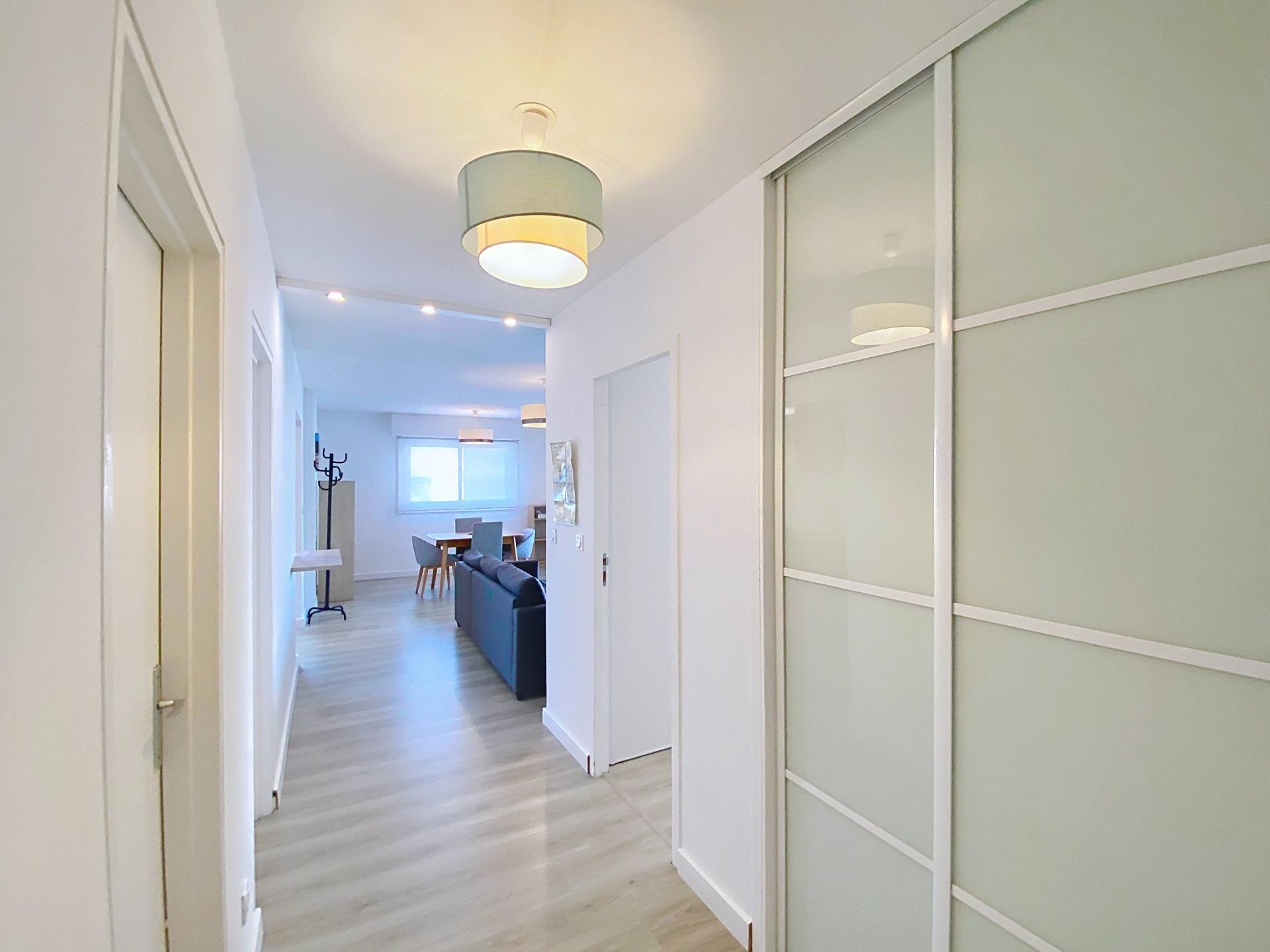 À deux pas du tram A et de l’Aqua Stadium, T3 lumineux entièrement rénové de 76 m² dans résidence calme, sécurisée et arborée avec gardien.