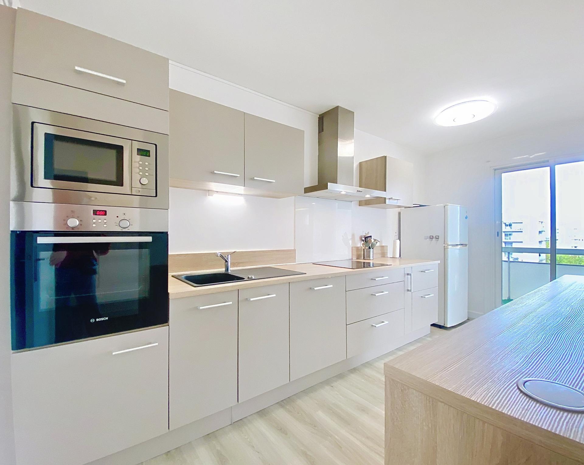 A proximité immédiate du tram A et de l'Aqua Stadium : T3 rénové de 76 m² - résidence calme et sécurisée avec parking extérieur libre -