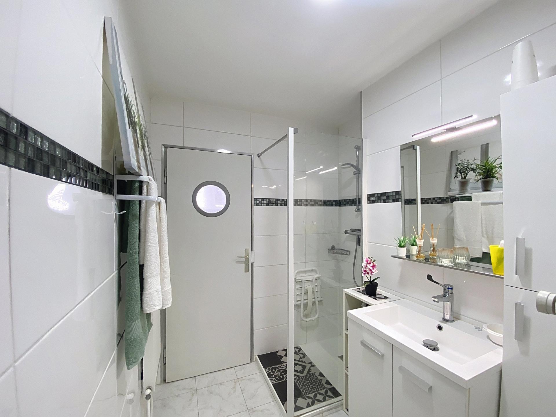 À l'intérieur, cet appartement en semi rez-de-chaussée avec demi-palier offre une superficie habitable de 82 m² (80m2 loi carrez) comprenant 5 pièces, dont 3 chambres avec la possibilité de créer une 4ème chambre ou un bureau.