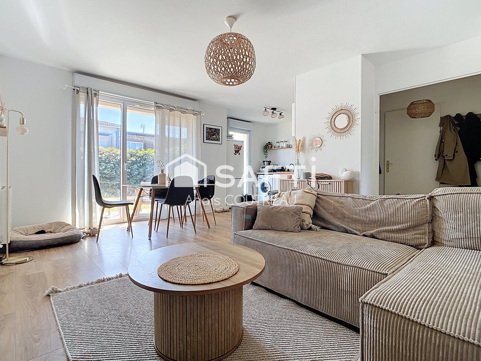 Dans le quartier Piquey, proche du Parc du Château, venez découvrir ce bel appartement de Type2 de 48m2 avec son jardin privatif de plus de 60m2 avec sa terrasse au sein d'une résidence sécurisée. L'appartement se compose d'une entrée indépendante avec placard, d'un séjour avec sa cuisine ouverte entièrement équipée donnant sur une terrasse et son jardin clôturé. Côté nuit, vous disposez d'une chambre avec placard et d'une salle de bain avec wc séparé. Une place de stationnement en parking sous terrain sécurisé vient compléter le bien. Possibilité de stationner un autre véhicule sur un parking aérien places libres. Nombreux rangements, proximité des commodités, accès direct aux transports en commun. Visite virtuelle possible sur demande. Appartement rénové en 2023 aucun frais à prévoir.