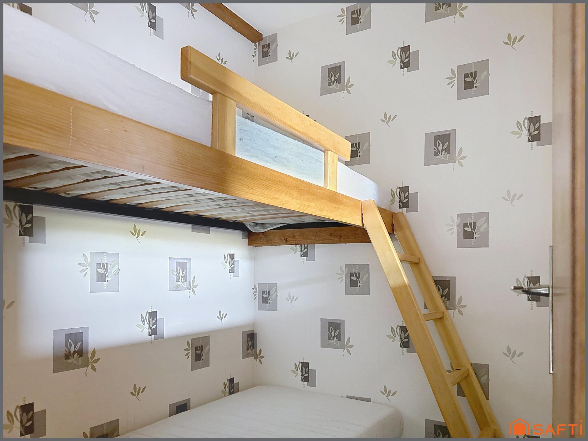 une chambrette ou coin montagne équipé de lits superposés,