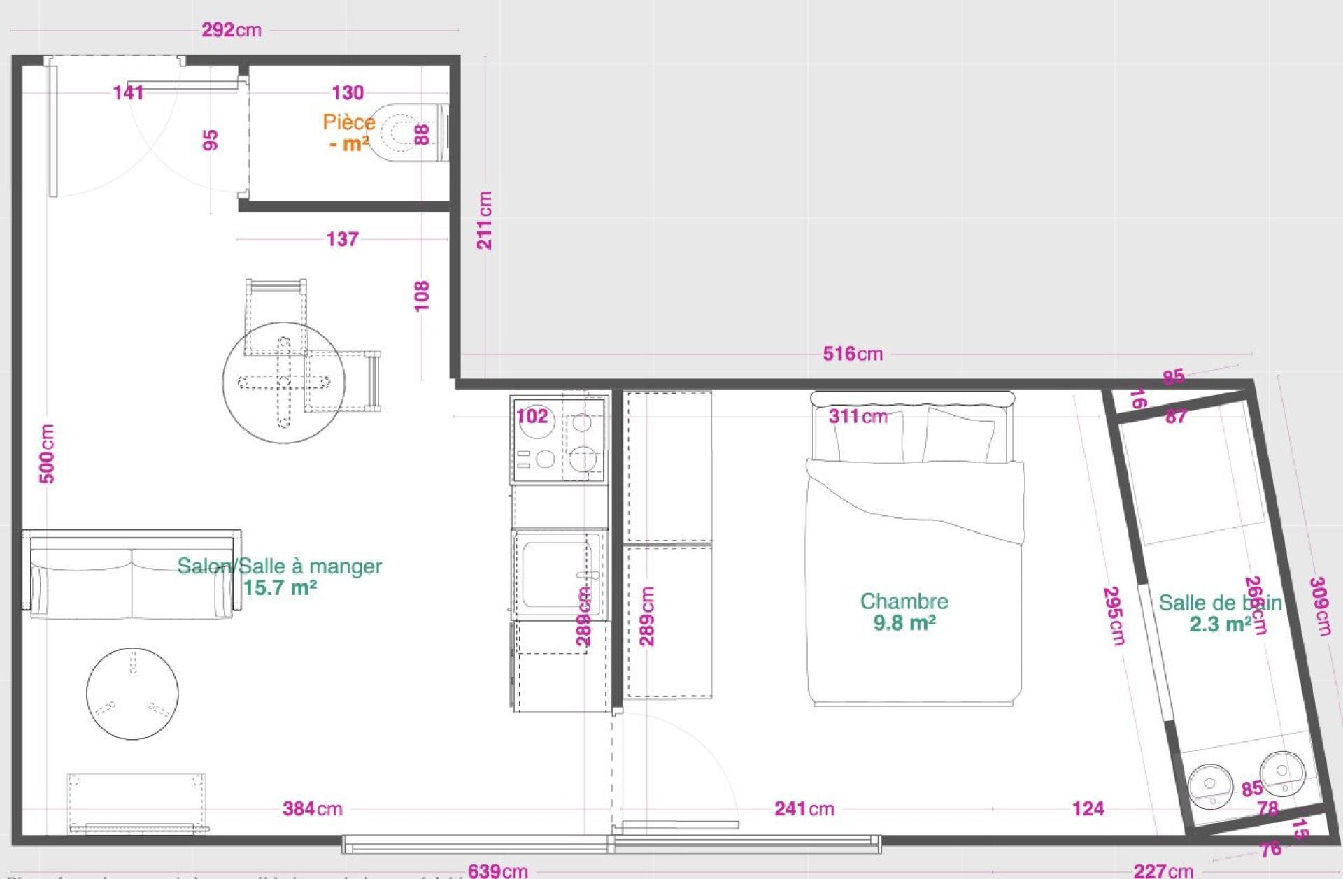 Aperçu de cet appartement à vendre de 2 pièces et 30 m²