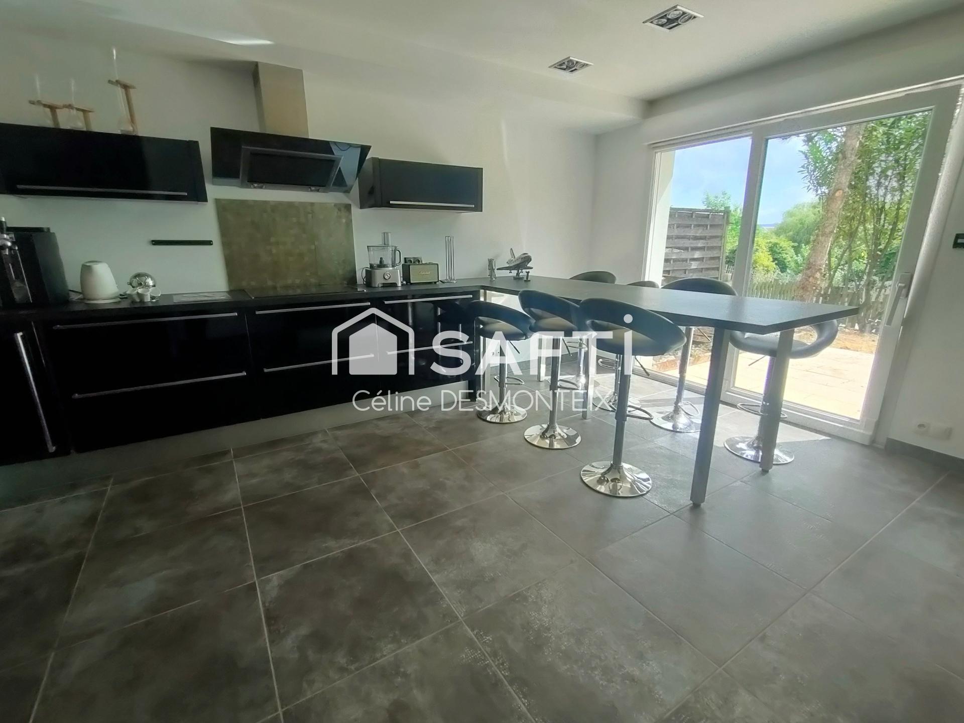 En demi-niveau inférieur : cuisine équipée, conviviale et pratique.