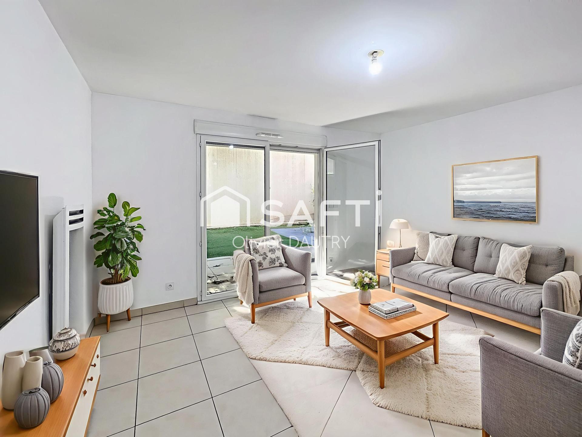 À l’extérieur, vous bénéficiez d’une terrasse d’environ 15 m² donnant sur un jardin privatif de 52 m², parfait pour profiter des beaux jours en toute tranquillité.