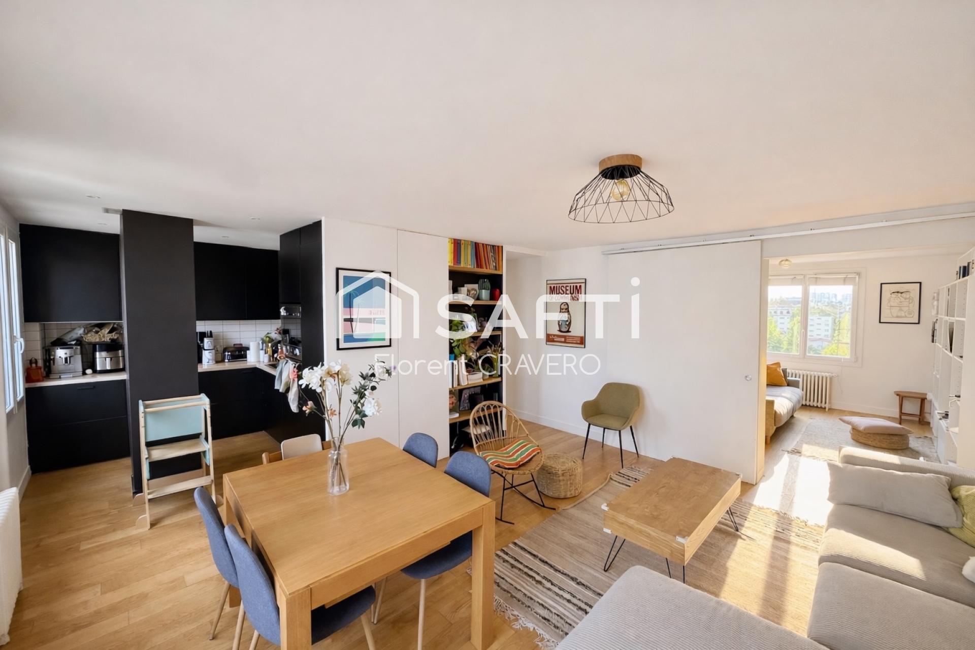 À moins de 5 minutes de la rue de l’Église et de ses commerces, à proximité immédiate des écoles et des transports, cet appartement réunit tous les critères recherchés pour une vie de famille agréable.