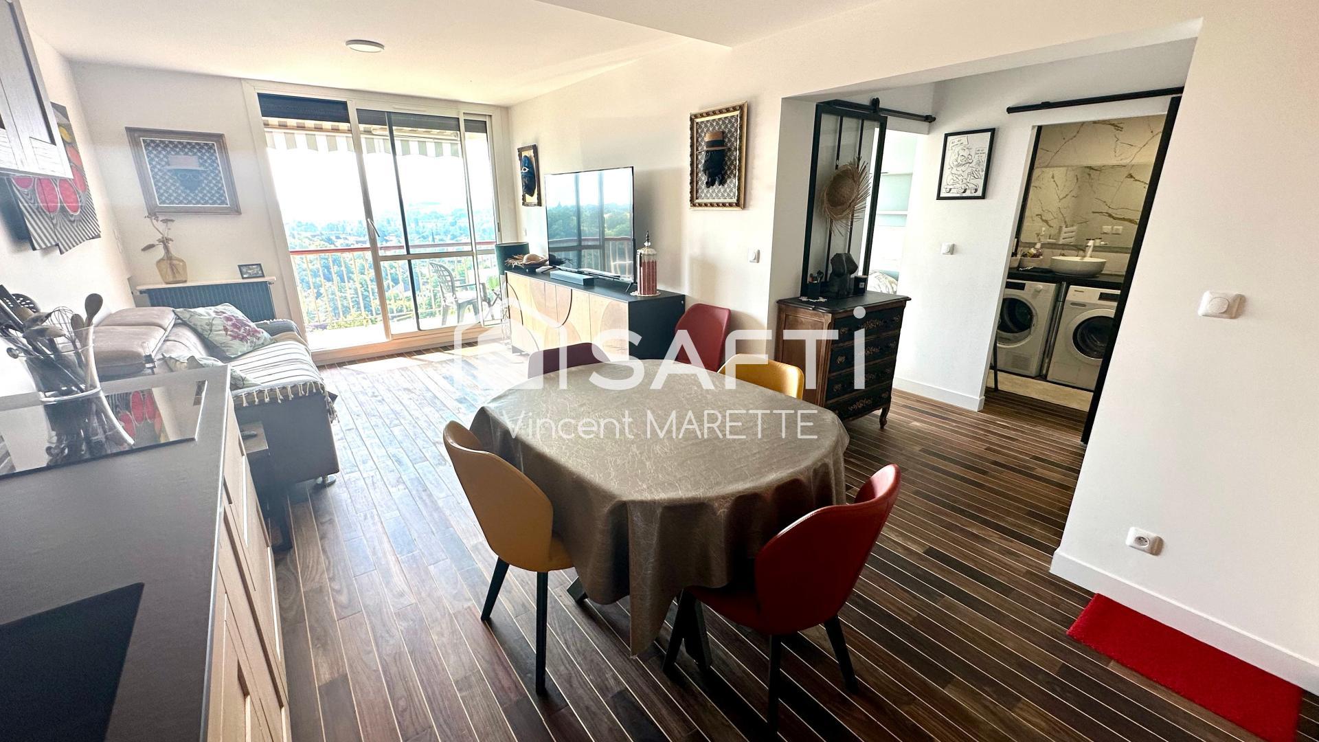 Pour les particuliers : Profitez d'un deux pièces de 47,92 m² refait à neuf, conçu avec des matériaux de qualité. Dès l’entrée, vous êtes accueilli par une cuisine équipée et aménagée, parfaite pour préparer vos repas en toute simplicité. La pièce de vie, lumineuse et spacieuse, bénéficie d’une grande baie vitrée qui ouvre sur un large balcon, idéal pour profiter du calme et de la vue imprenable sur la ville ou pour accéder à votre chambre. Une salle de douche moderne, équipée d’un lave-linge, ainsi qu’un WC séparé viennent compléter ce bien.