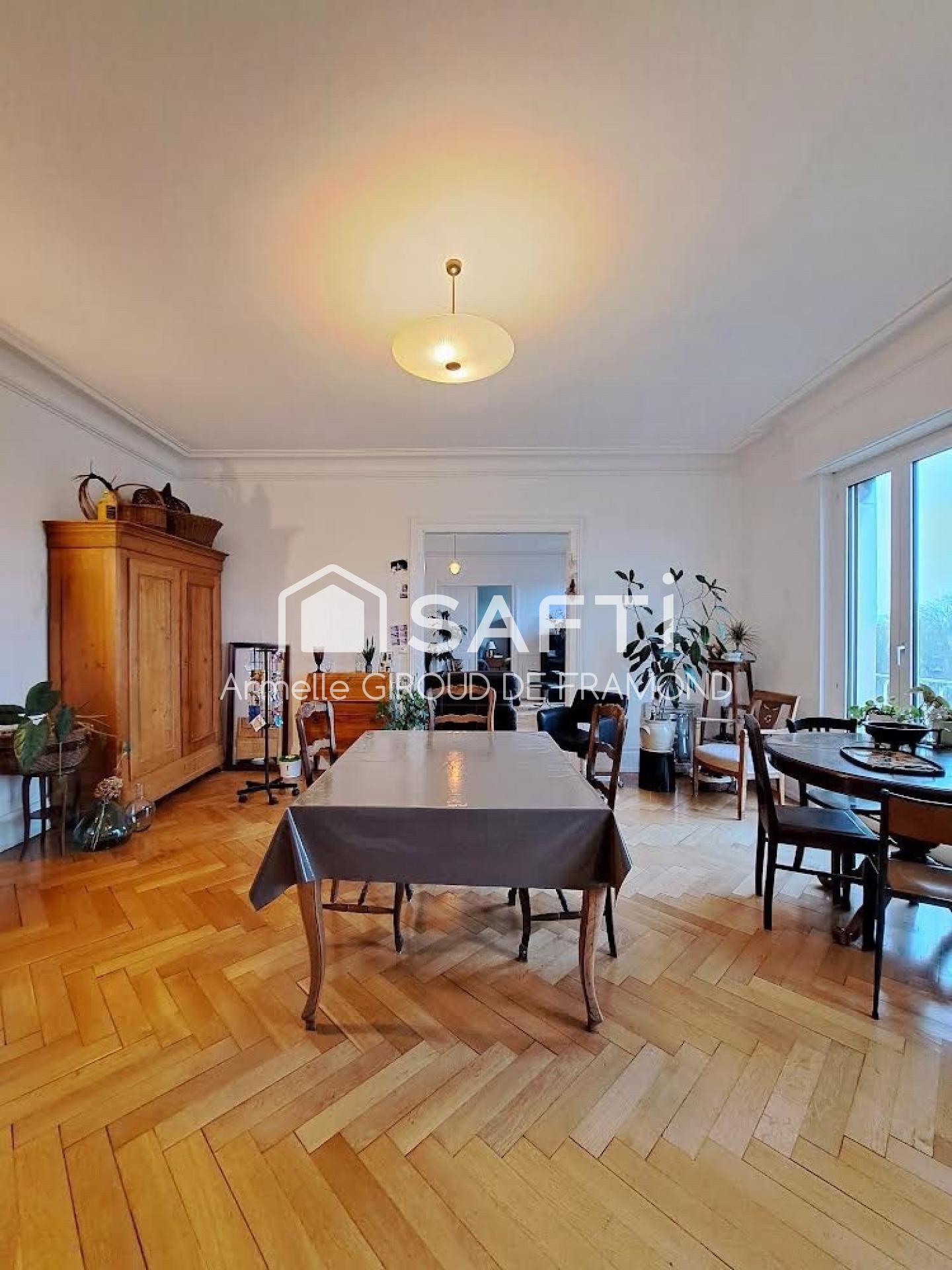 Situé à Mulhouse dans quartier agréable de Daguerre-Dornach, grand appartement avec cachet et lumineux, traversant et sans vis-à-vis de 160 m2, 5 pièces, salon, salle à manger, cuisine équipée, 2 salles d’eau, 2 toilettes, cave et 2 places de stationnement.