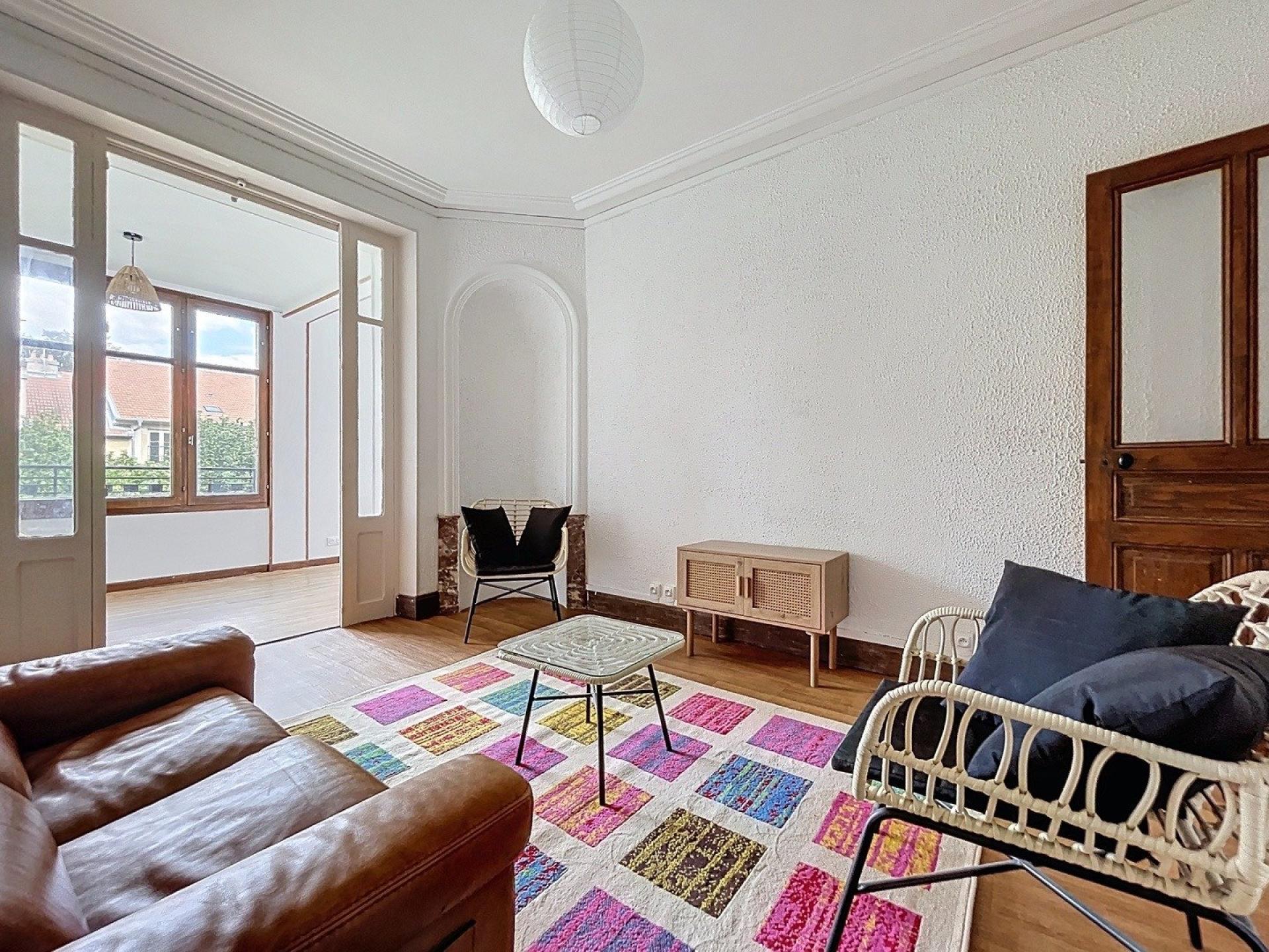 Appartement meublé 72m², 2 chambres, lumineux, cuisine équipée, quartier Saurupt recherché et calme, proche tram/bus, idéal colocation.