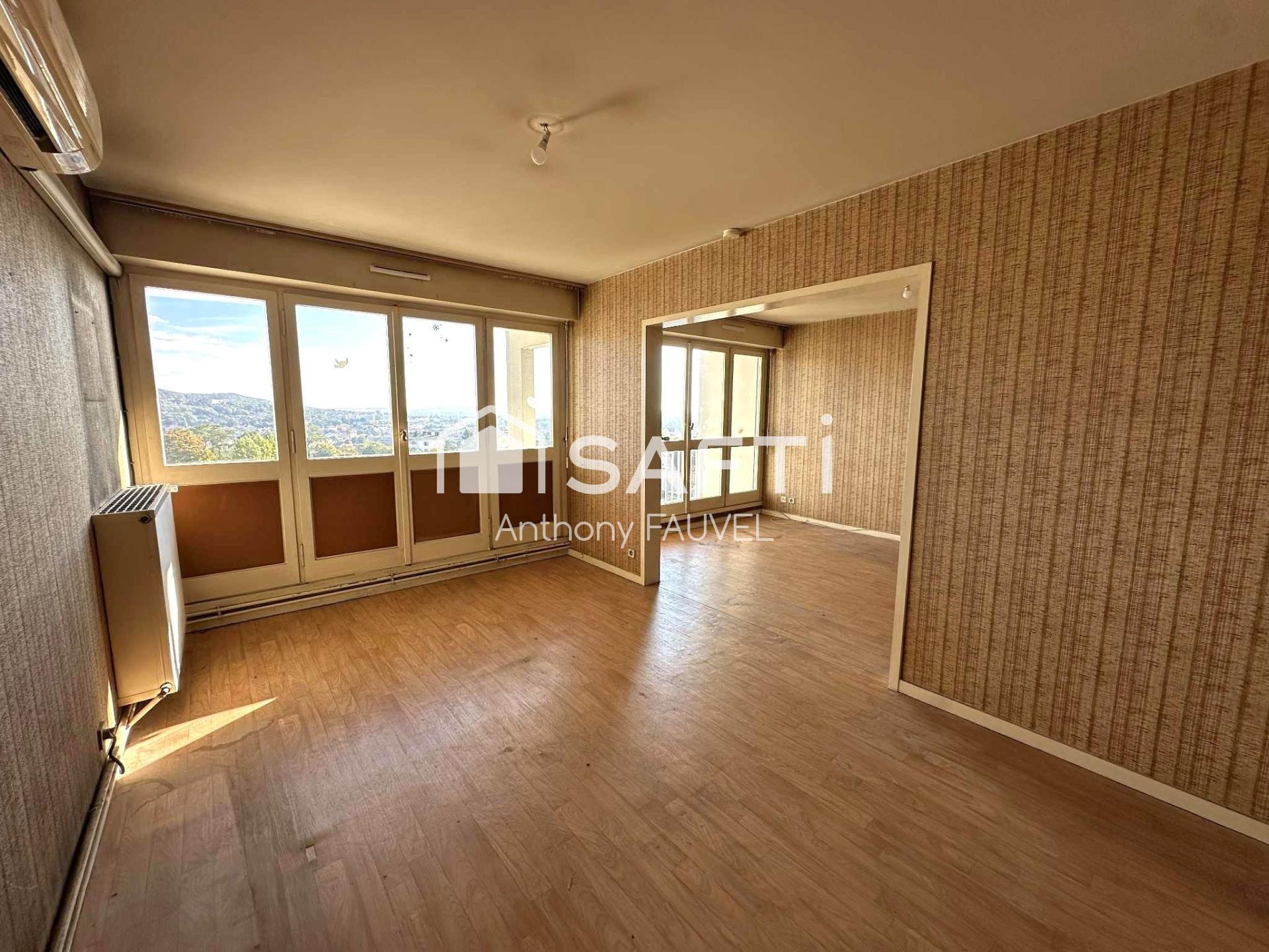 L'intérieur de ce logement à rénover comprend une vaste entrée, un grand salon séjour donnant sur un long balcon, une cuisine séparée, trois chambres dont une avec balcon, une salle d'eau, un WC, un dressing et 3 placards de rangement.