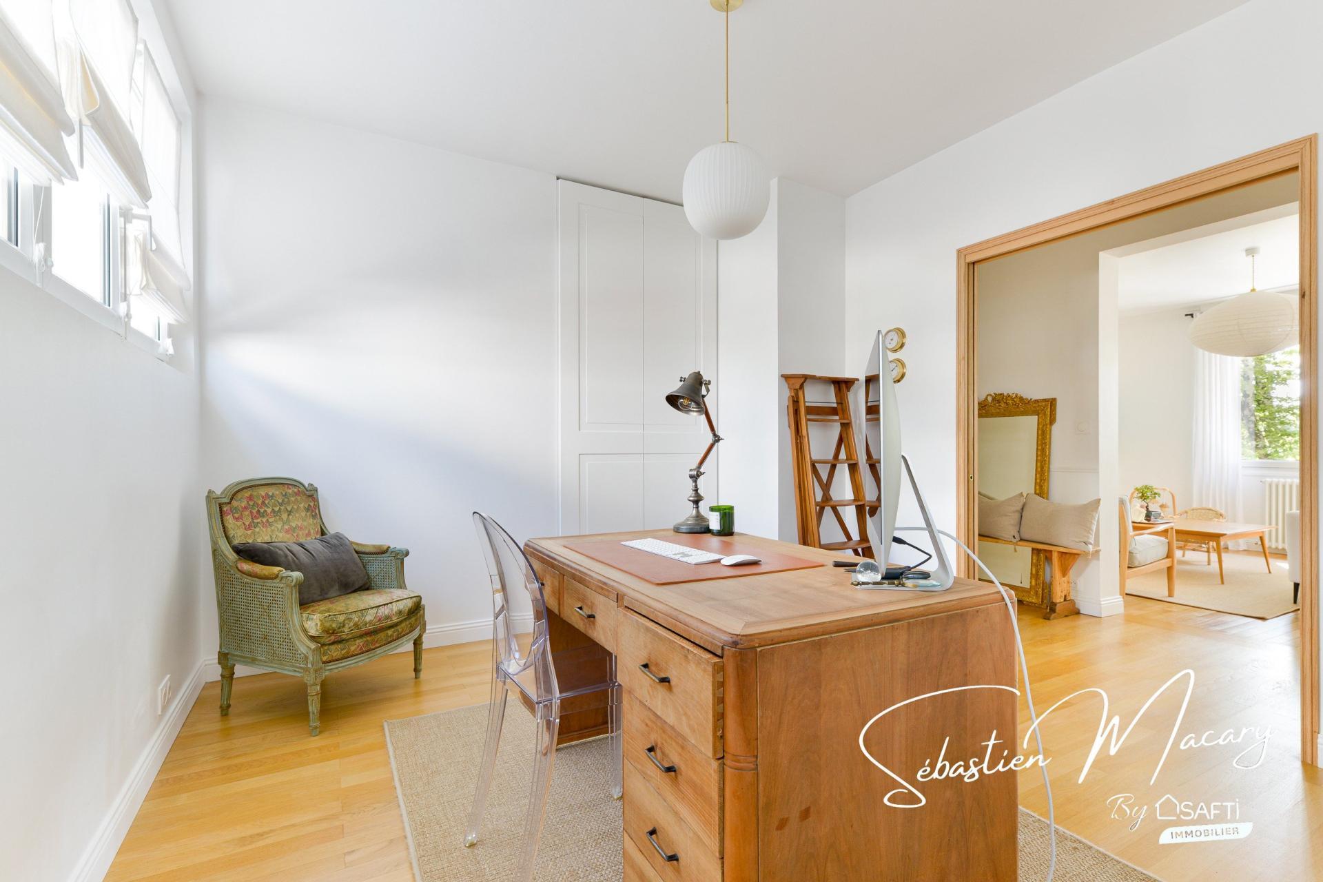 Rénovation haut de gamme, parquet véritable, 2 chambres + bureau, box fermé avec borne de recharge, emplacement idéal.