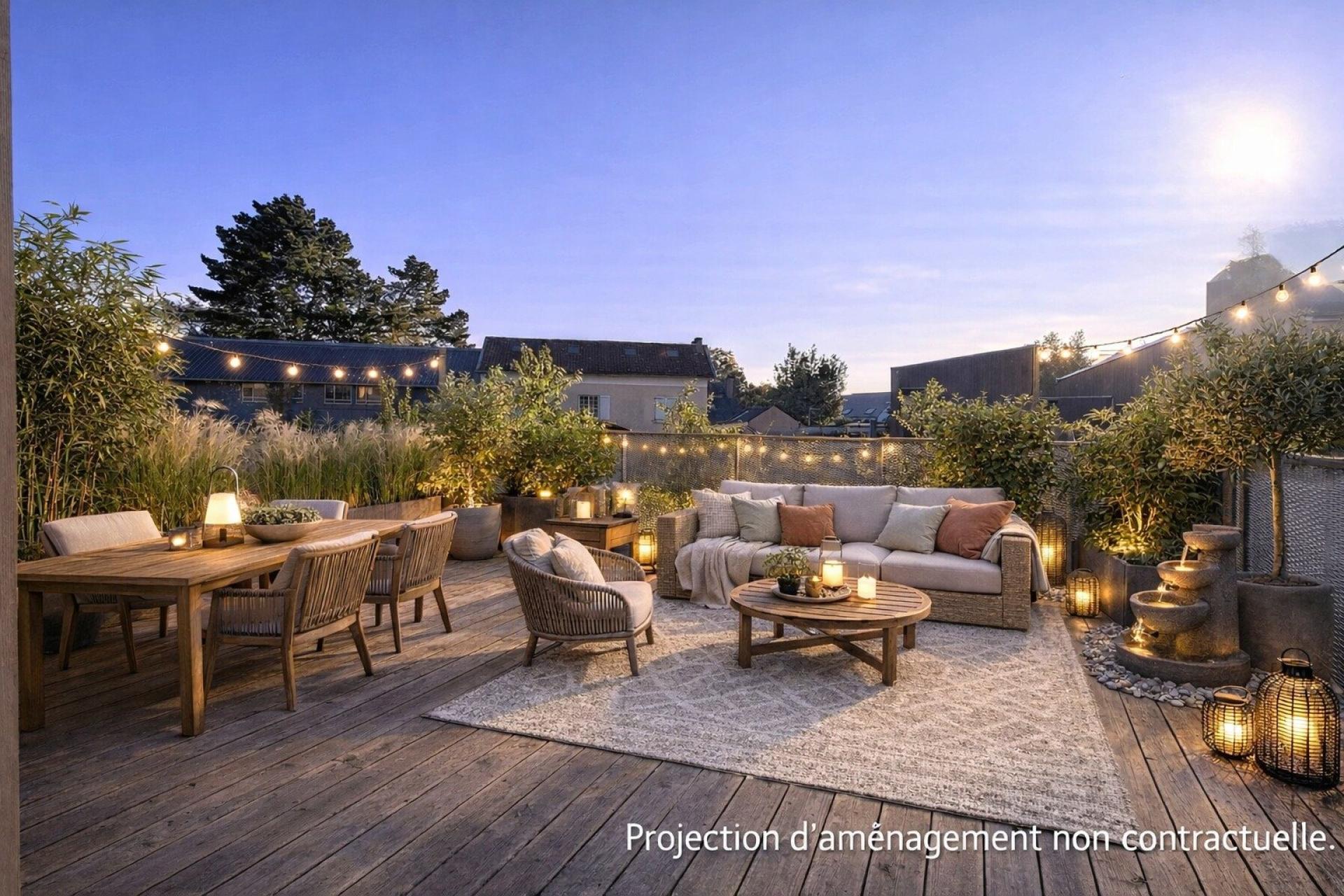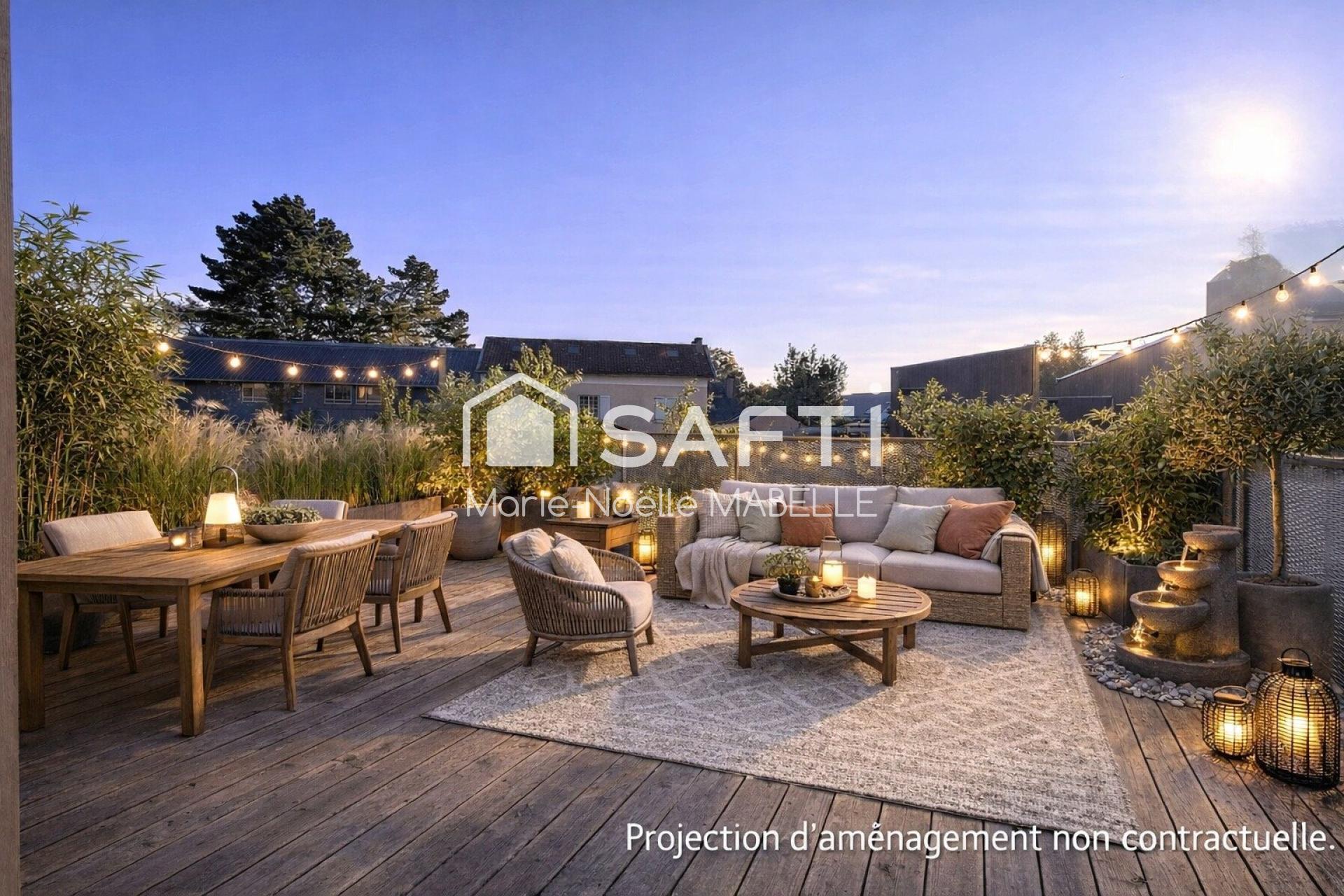 Luminosité, terrasse exceptionnelle avec vue agréable et dégagée, emplacement recherché au calme avec toutes les commodités à pied