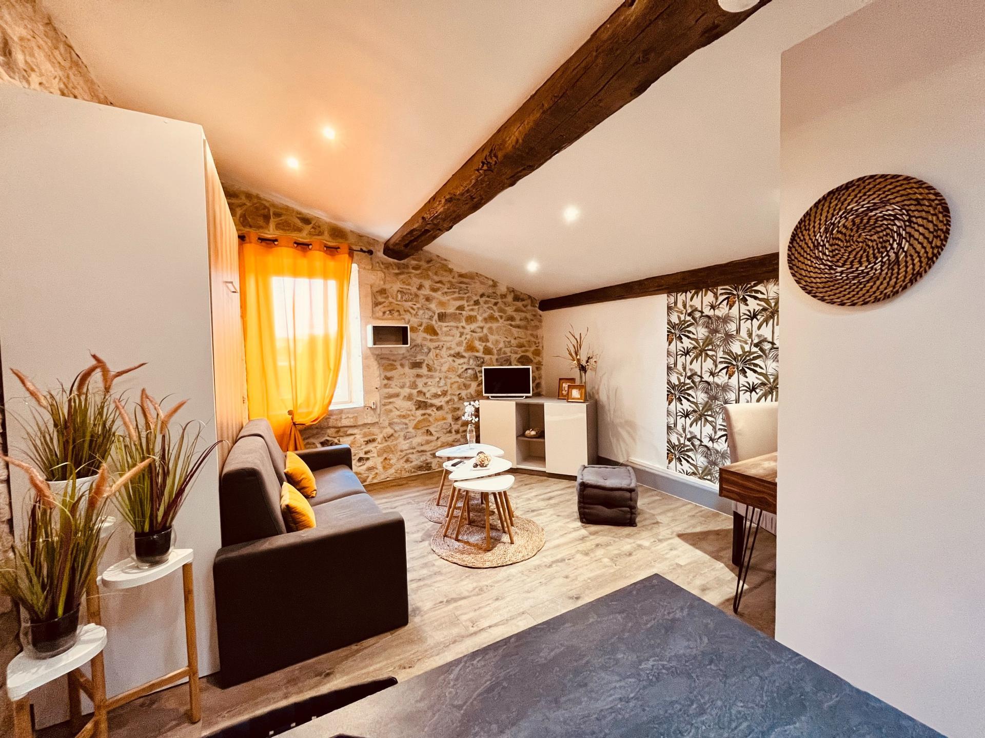 Situé au 2? et dernier étage d’une petite copropriété, ce studio de 26 m² séduit par son cachet unique : pierres apparentes, poutres et atmosphère chaleureuse.