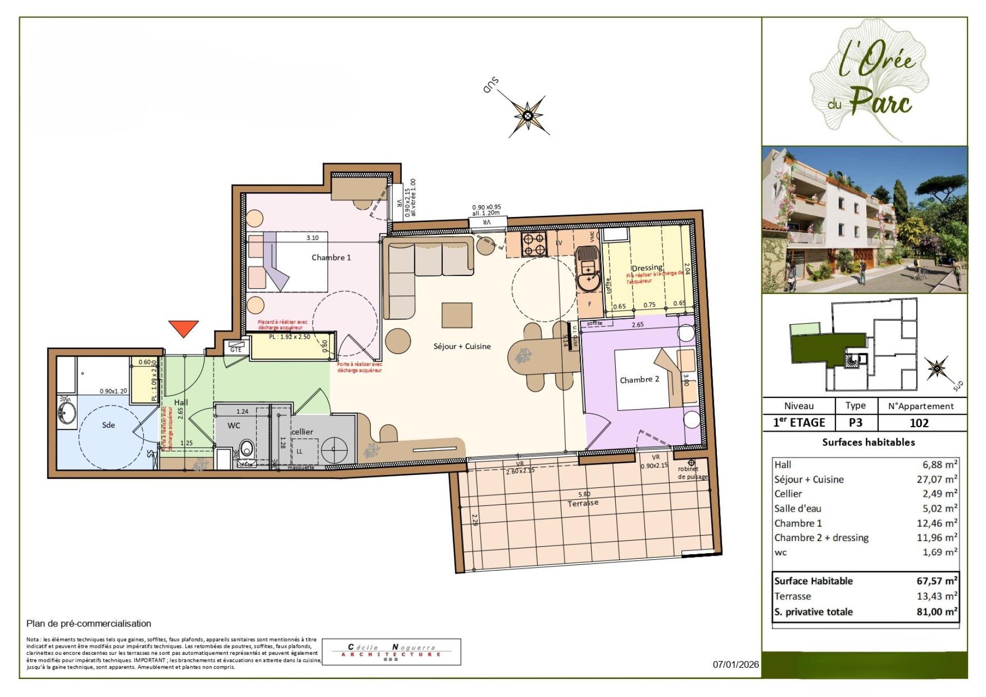 Un P3 neuf avec terrasse et stationnement, au pied du futur parc Jacques Chirac
