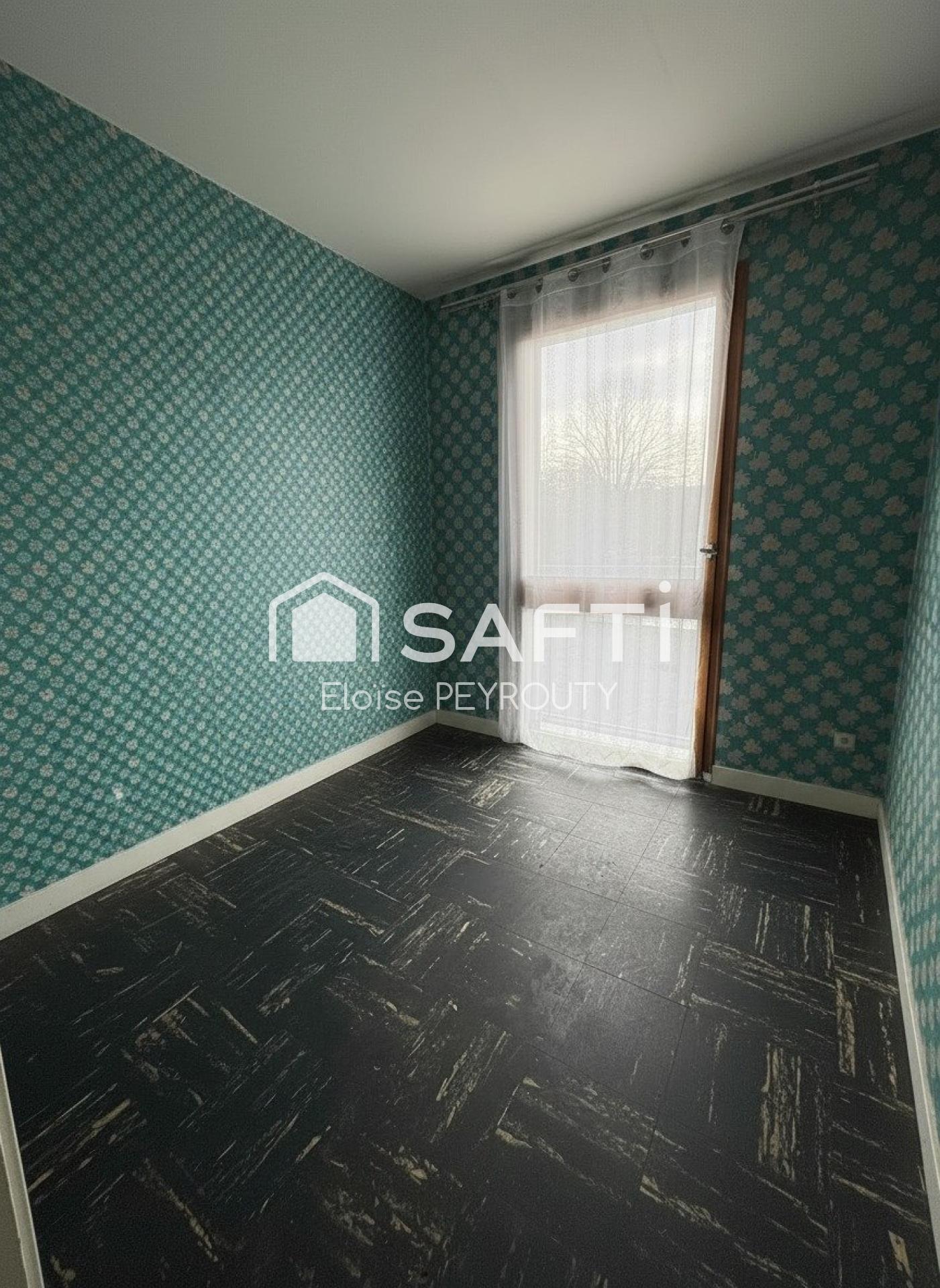 À 2 min de la gare et du supermarché, T4 d'environ 58 m² situé au 1er étage. Gardien présent, parc au centre de la résidence.