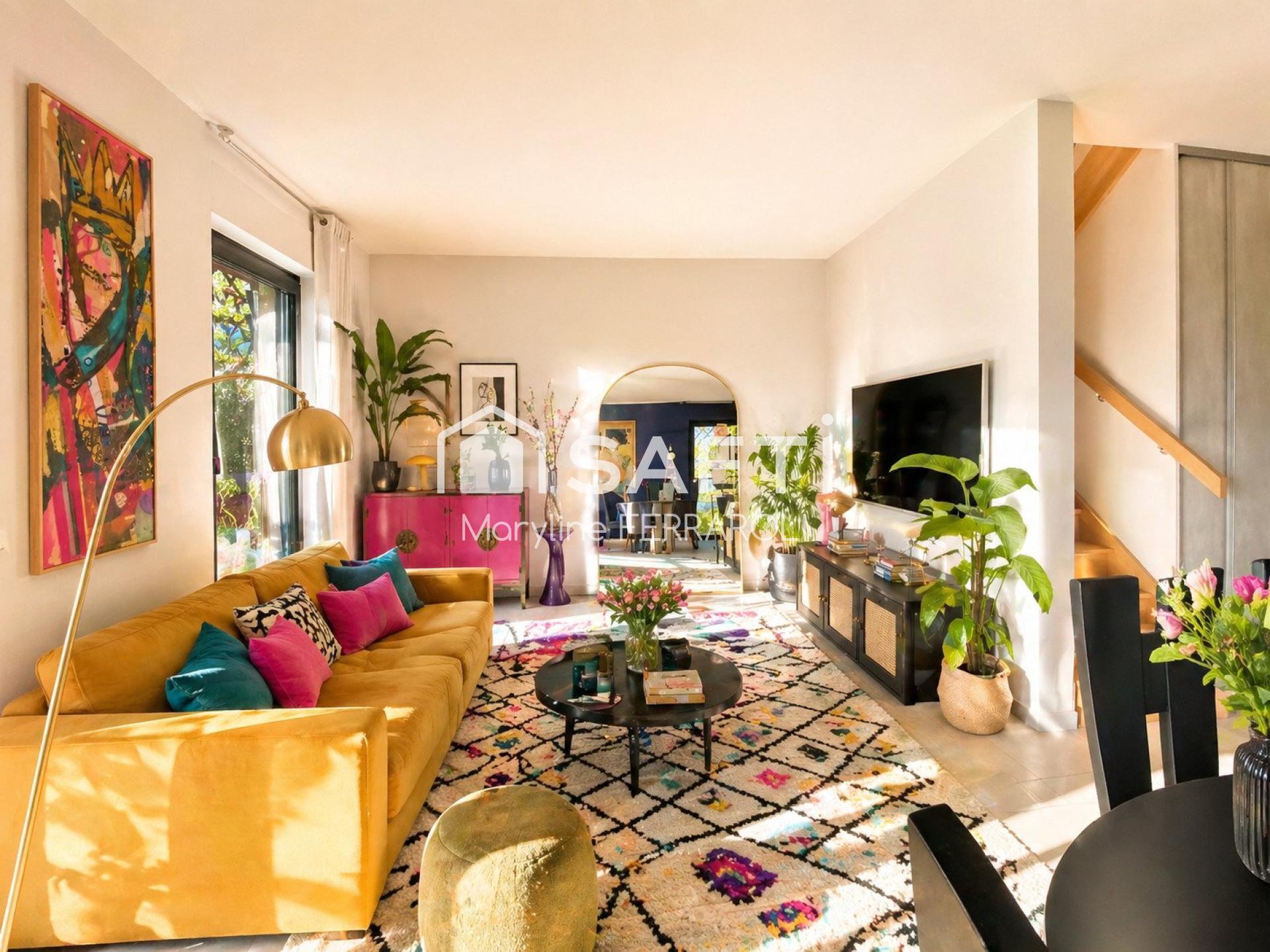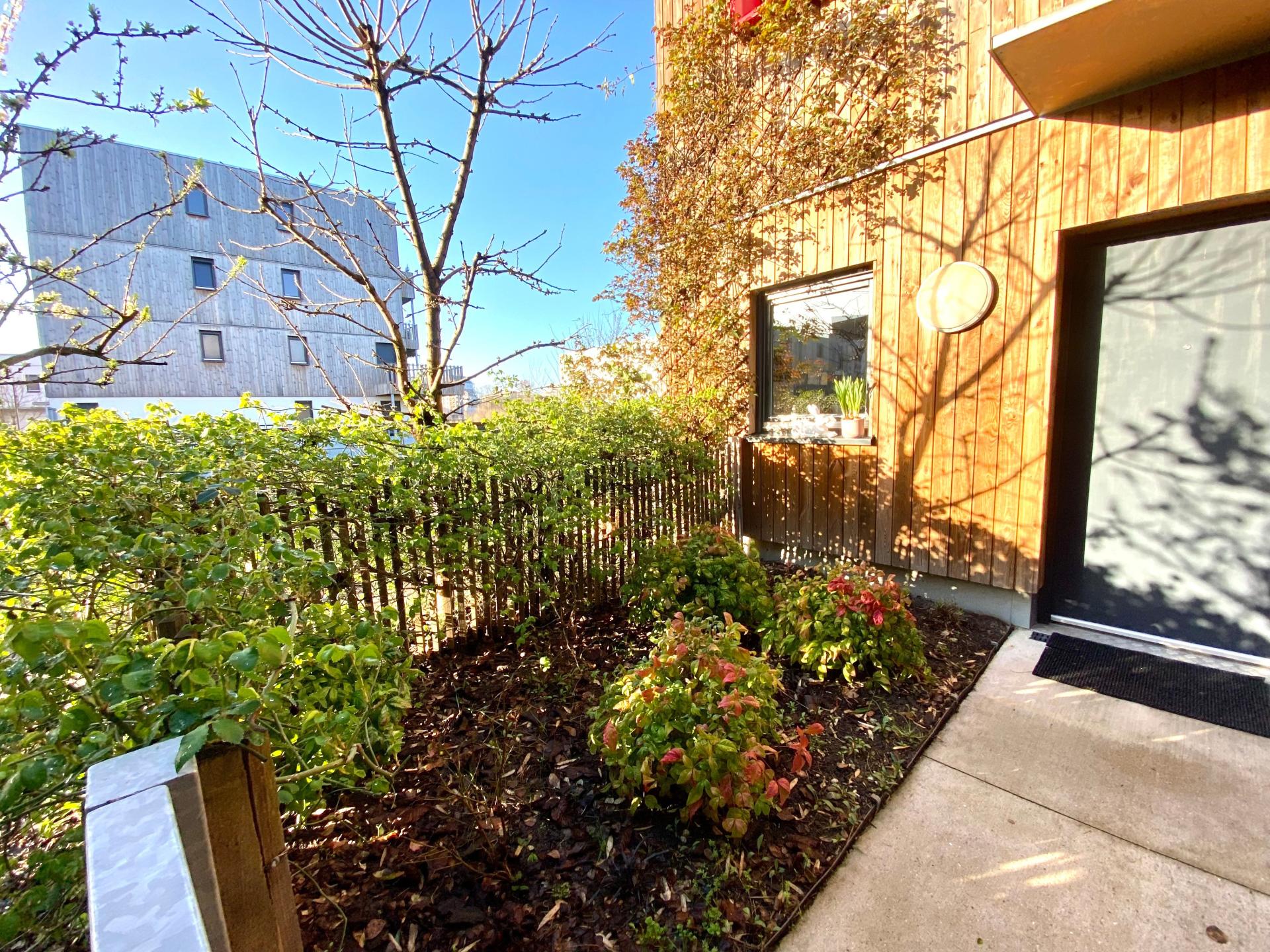 Vous profiterez de plus de 75 m² d’espaces extérieurs, comprenant un jardin privatif de 17 m² à l’entrée, agrémenté de nombreuses essences (prunier, cerisier, lilas, jasmin, bambou, cassis).