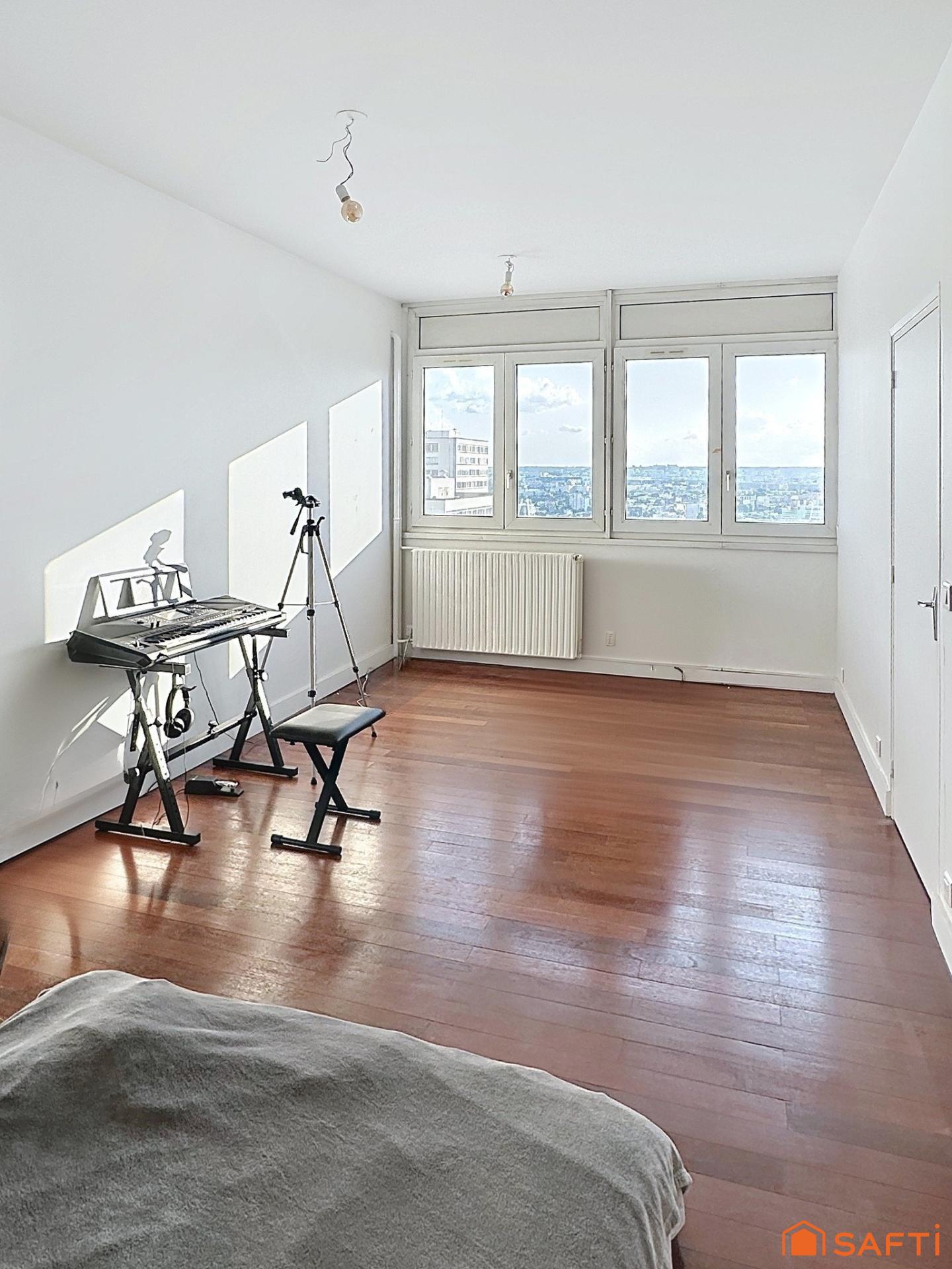 Au 31? étage d’une tour emblématique du 13?, ce 3 pièces lumineux de 102 m² offre une vue imprenable sur Paris, de la Tour Eiffel à Montmartre.
