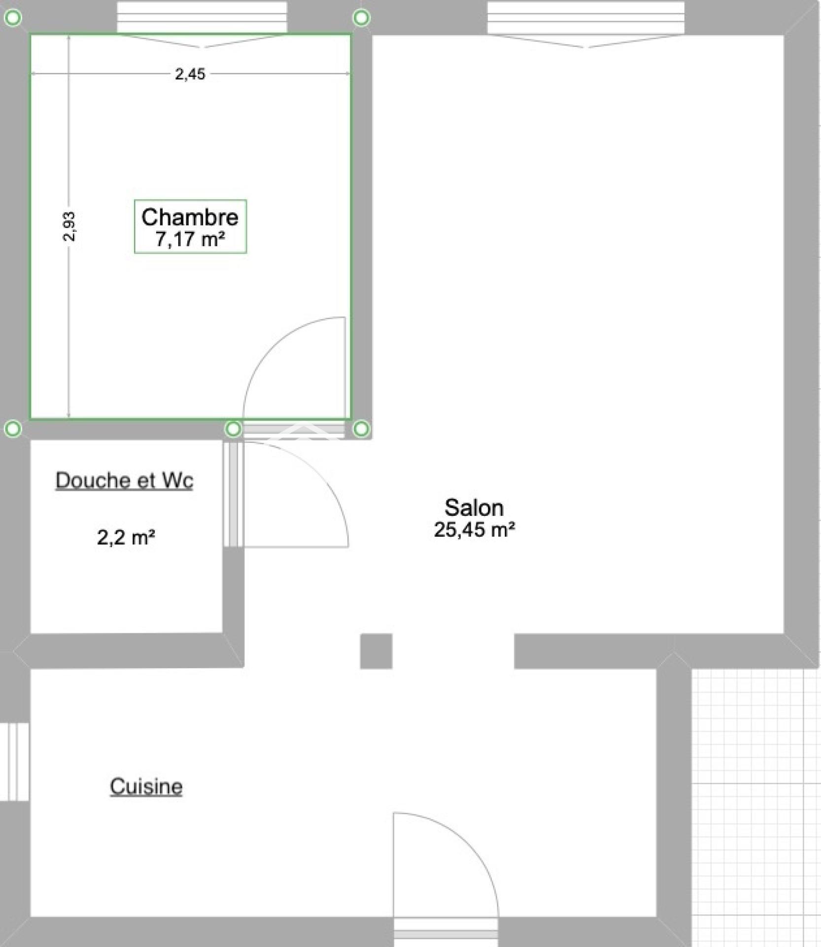 Aperçu de cet appartement à vendre de 2 pièces et 35 m²