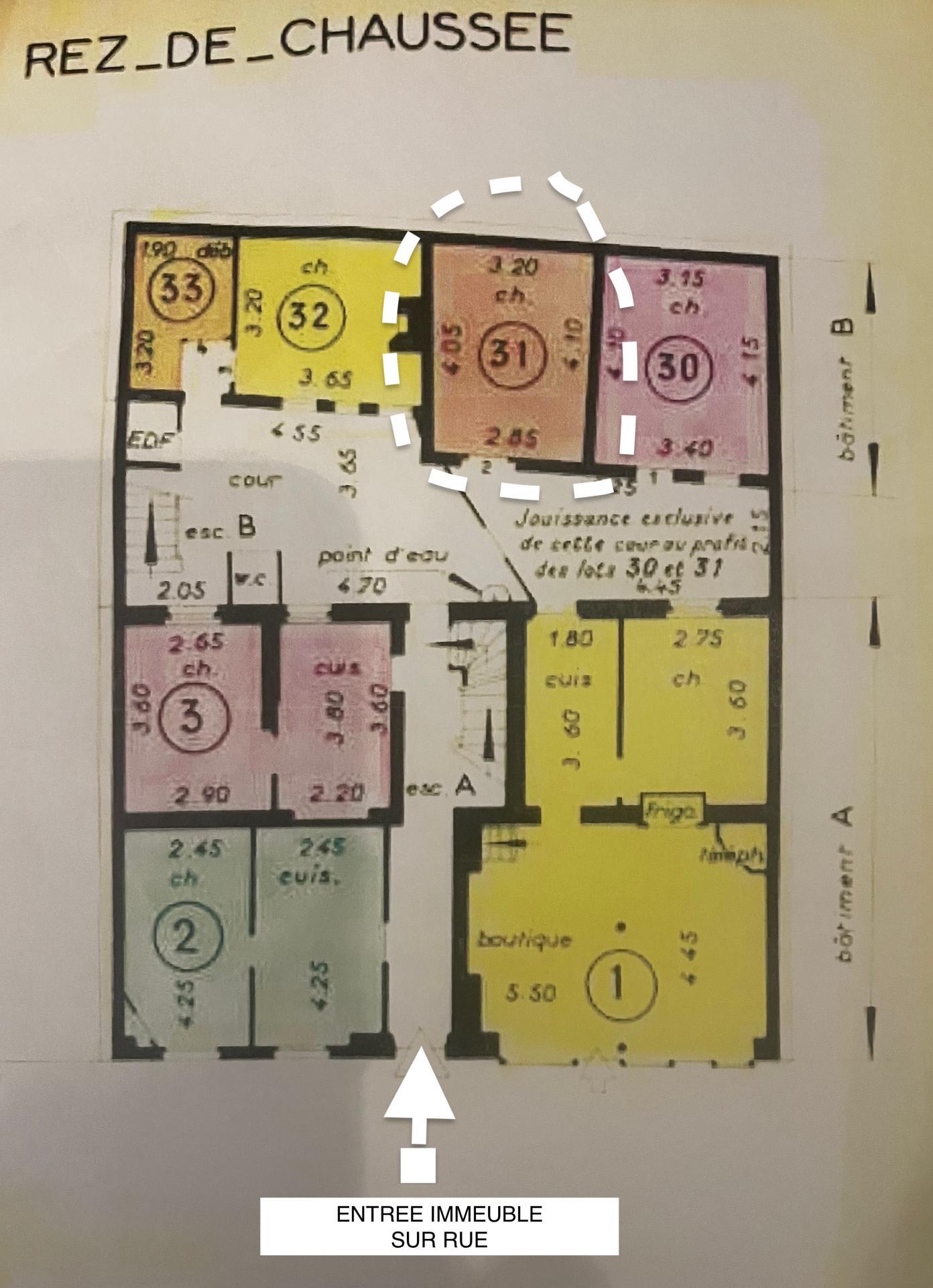 Cette surface indépendante sera vendue de préférence avec l'ensemble attenant formant un potentiel intéressant pour un appartement d'une superficie de 74m2 ouvrant sur cour intérieur privative.