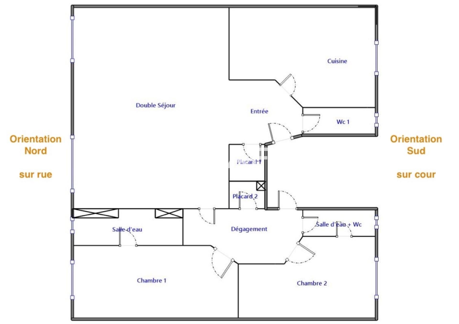 Traversant, au calme sur rue peu passante et cour, cet appartement séduit par sa luminosité, son charme de l’ancien et sa belle hauteur sous plafond. Il offre une distribution particulièrement agréable avec une entrée disposant de rangements, un séjour lumineux, une spacieuse cuisine dinatoire aménagée, ainsi qu’un espace nuit bien séparé comprenant deux chambres, chacune avec sa propre salle d’eau et WC. Un troisième WC indépendant complète l’ensemble.