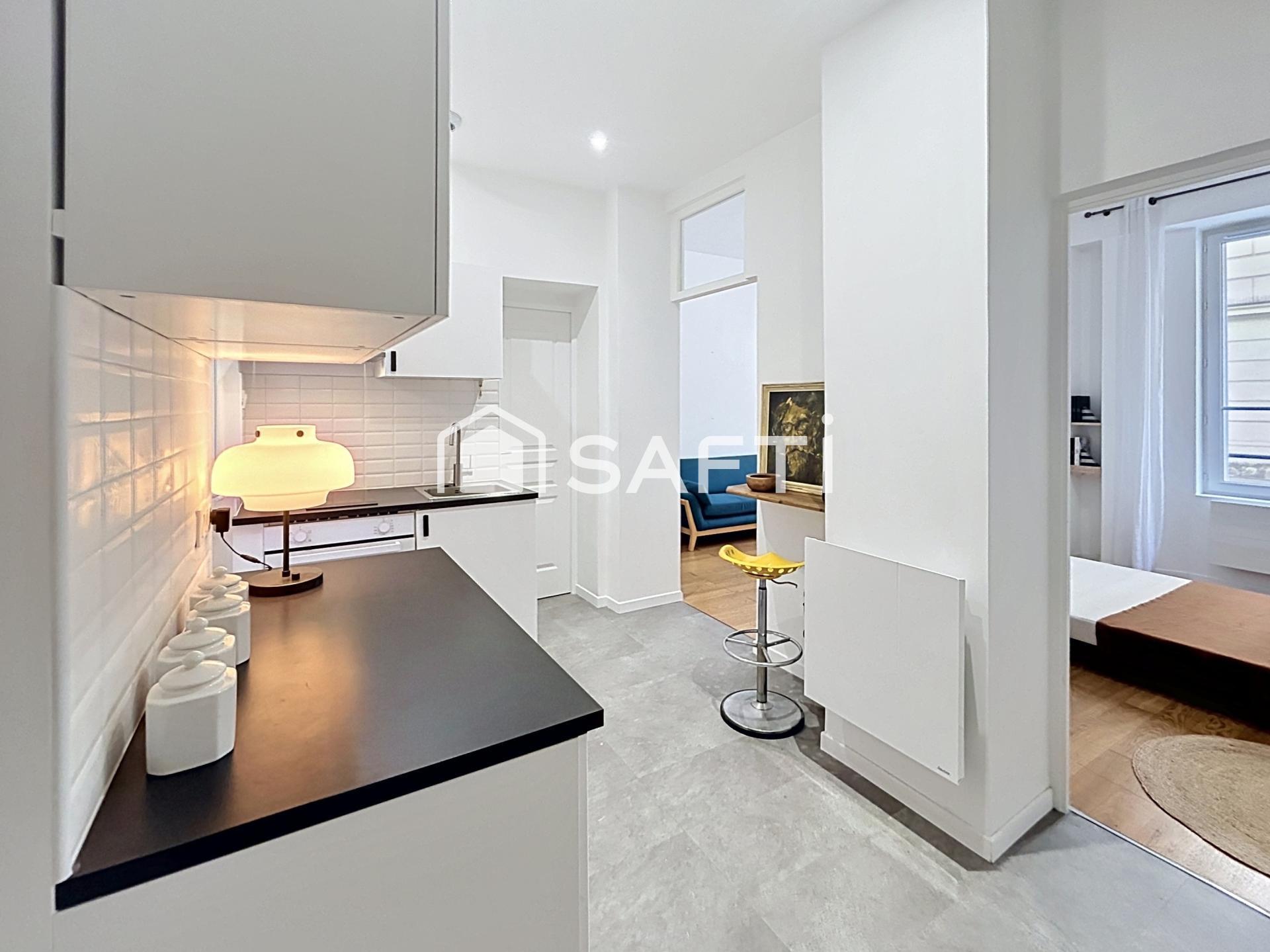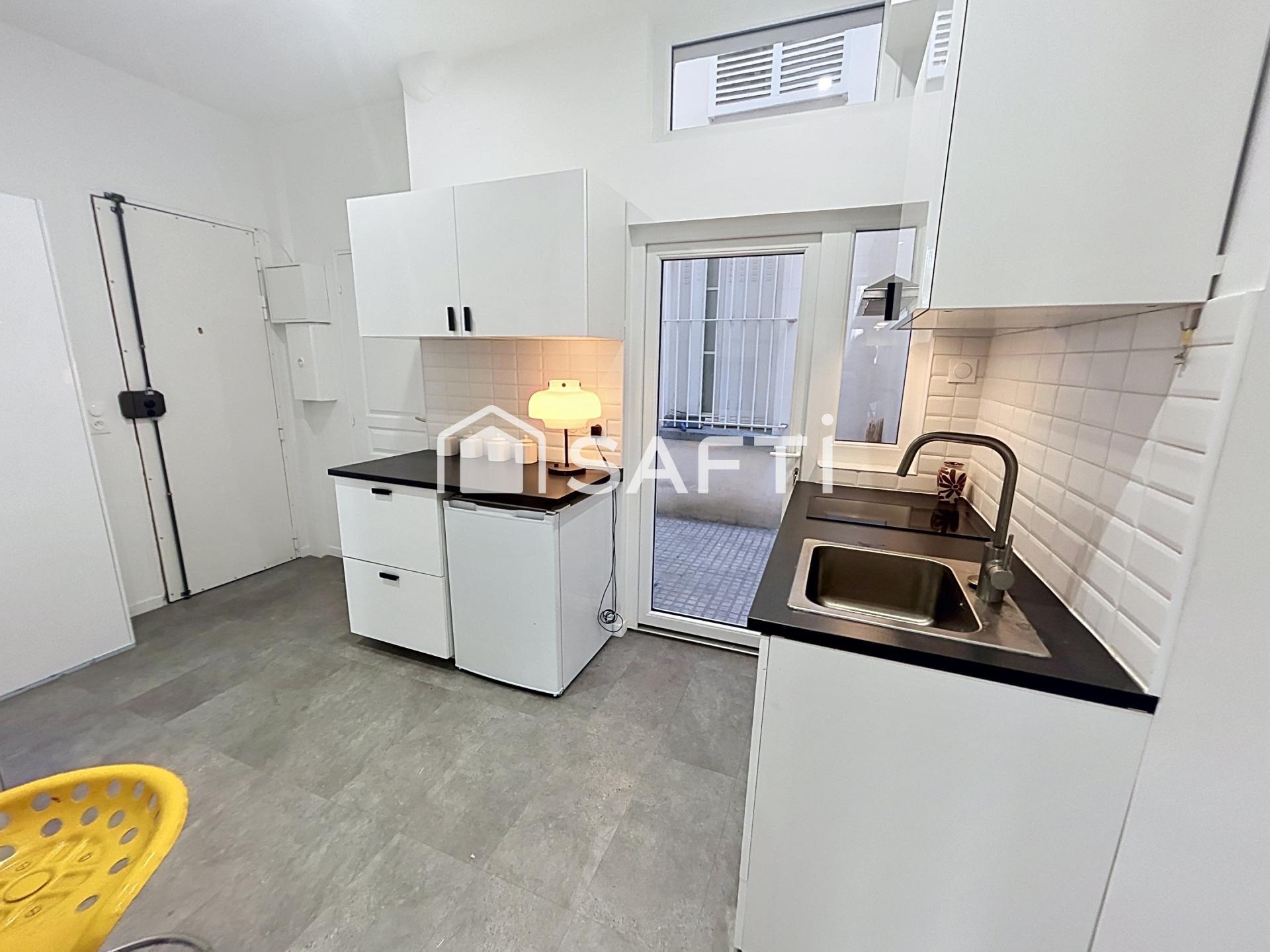 Deux pièces entièrement rénové avec patio privatif et cave, lumineux dans une rue calme.