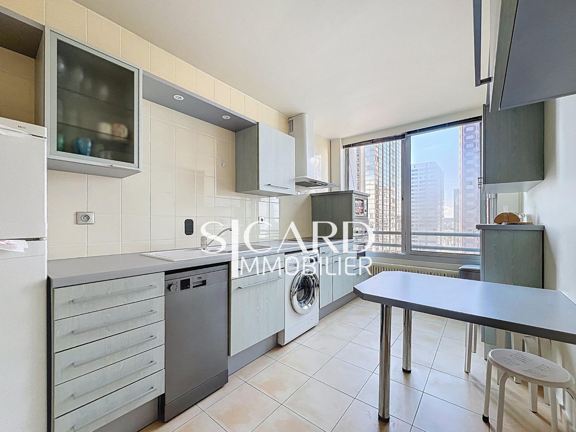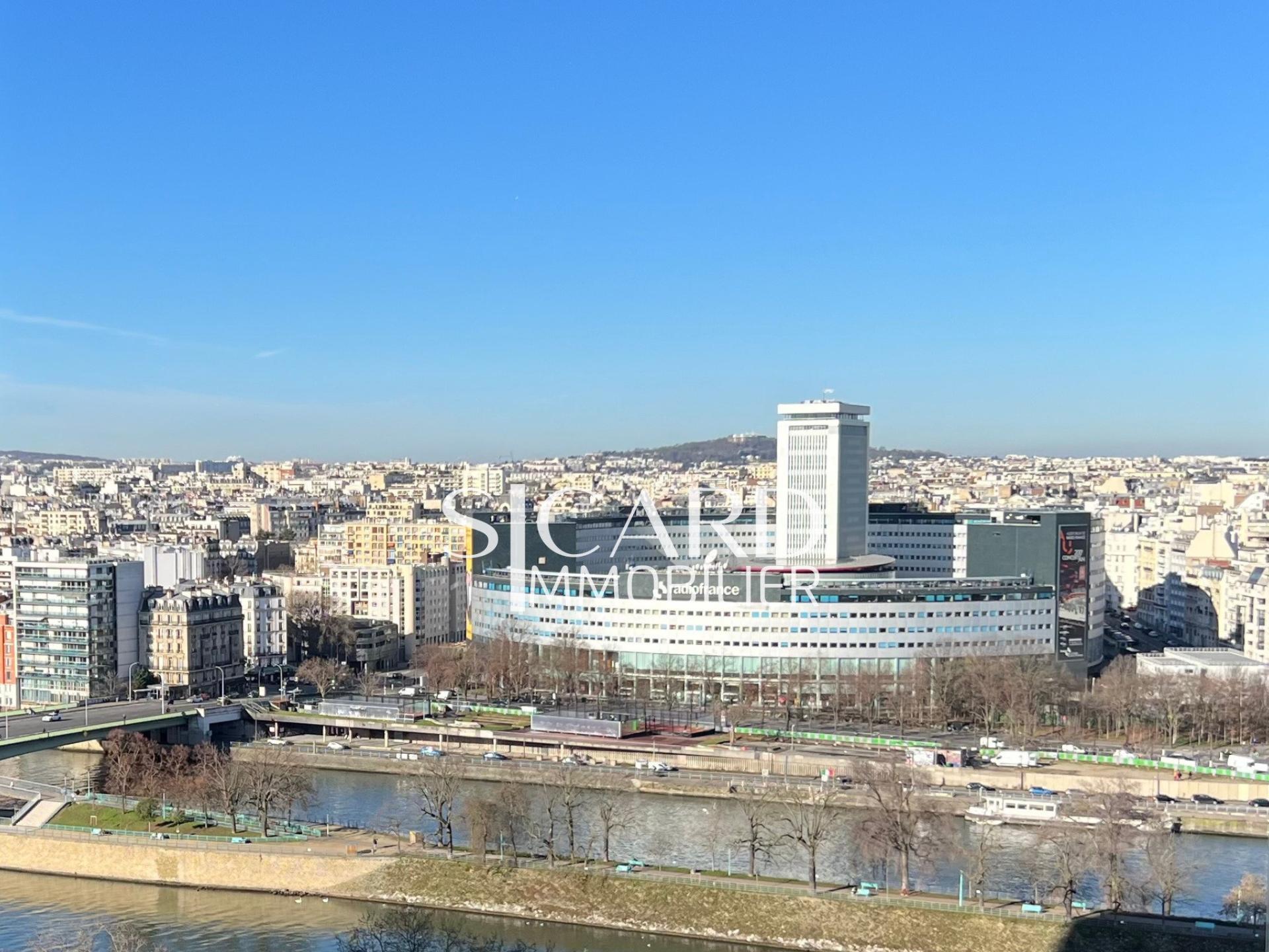 Étage élevé avec vue Seine et toits de Paris, appartement entièrement rénové, lumineux, avec parking et gardien 24h/24.