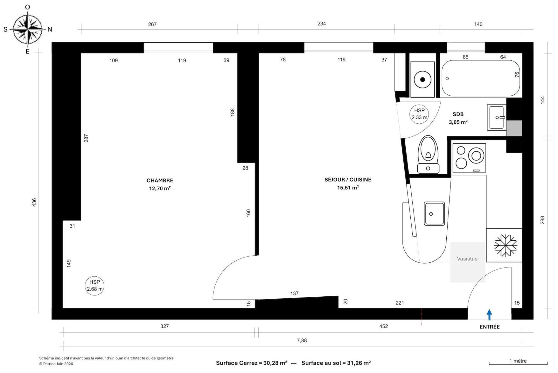 Description de cet appartement à vendre de 2 pièces et 30 m²
