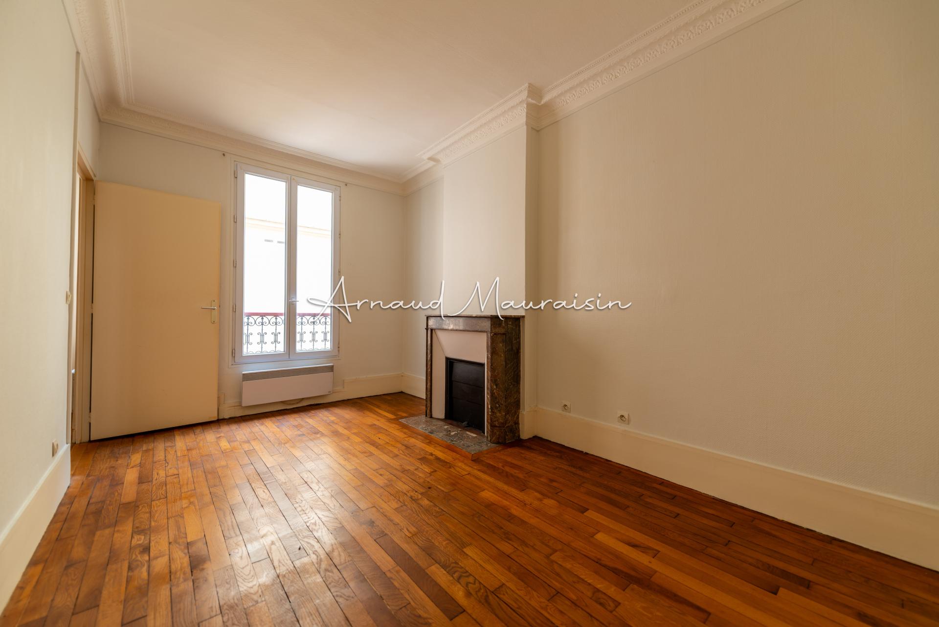 Situé au 3ème étage sur 6 sans ascenseur, et donnant sur cour intérieure, l'appartement fait 35m2, il est composé d'une entrée, d'un salon avec cheminée, d'une chambre avec cheminée, d'un bureau, d'une petite cuisine et d'une salle d'eau avec wc.