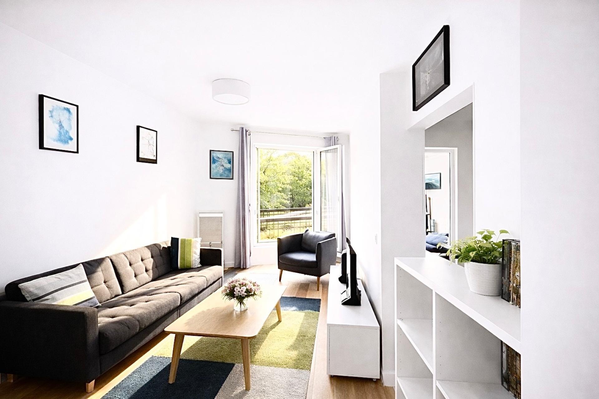 L’appartement se compose d’une belle pièce de vie lumineuse avec cuisine équipée ouverte, fonctionnelle et conviviale, donnant sur un séjour bénéficiant d’une vue dégagée et verdoyante, offrant un véritable esprit « campagne à Paris ».