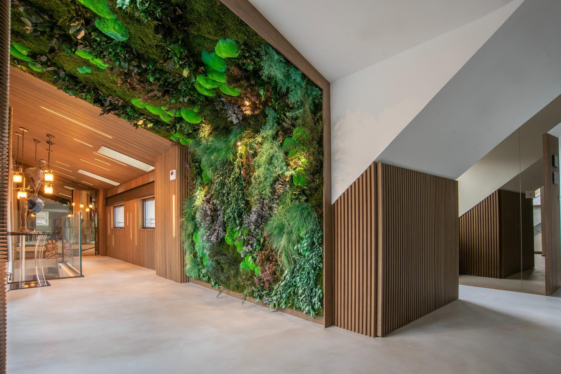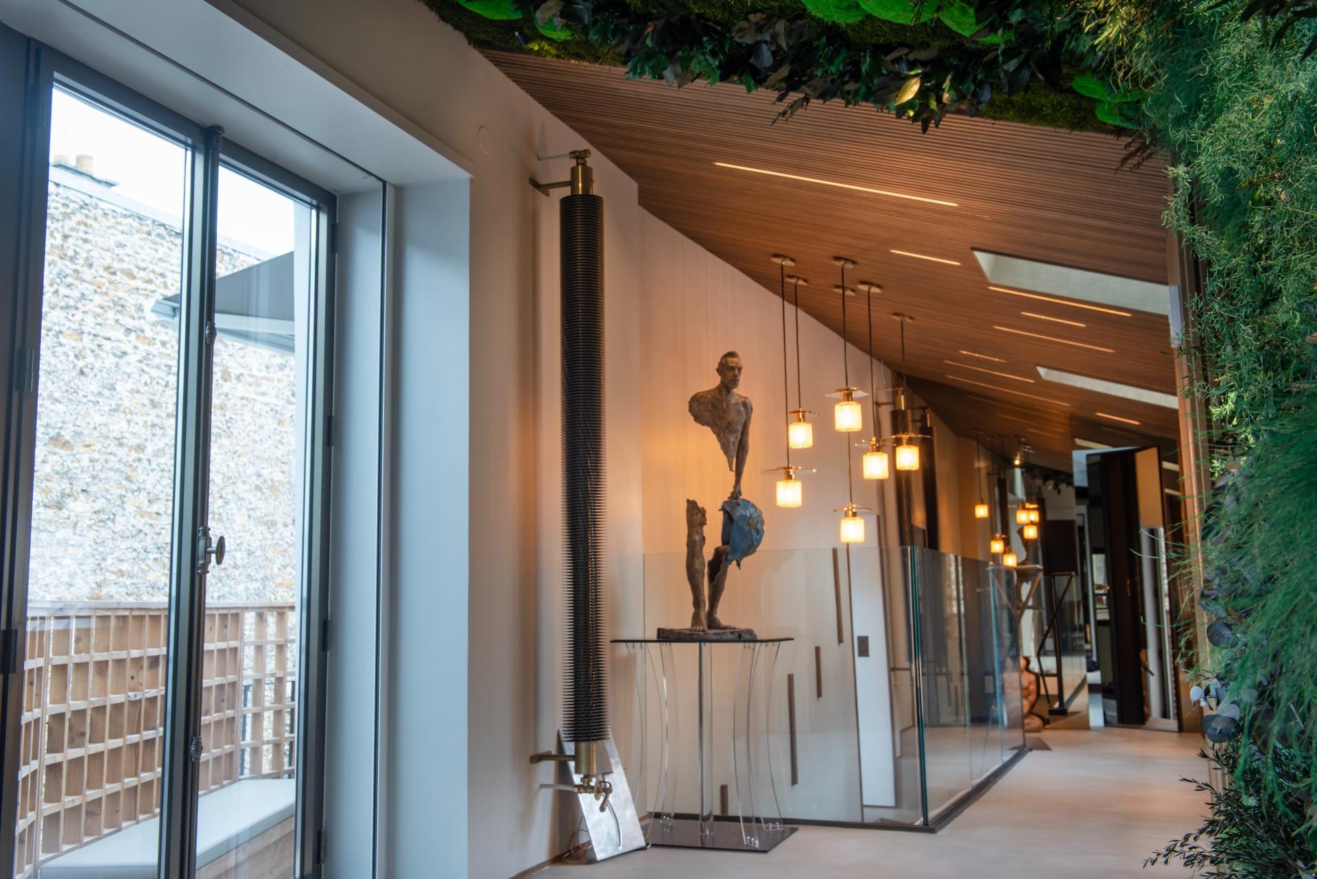 RARE ET UNIQUE HAVRE DE PAIX : Comme une maison sur les toits , ce Duplex entièrement rénové par architecte avec des matériaux très haut de gamme est composé d'une somptueuse galerie d'entrée avec cage d'escalier en verre et mur végétalisé , une salle à manger avec poutres apparentes de + de 40 m2 avec cuisine aménagée et équipée , matériel de cuisson professionnel haut de gamme , d'un grand salon donnant sur terrasse extérieure
