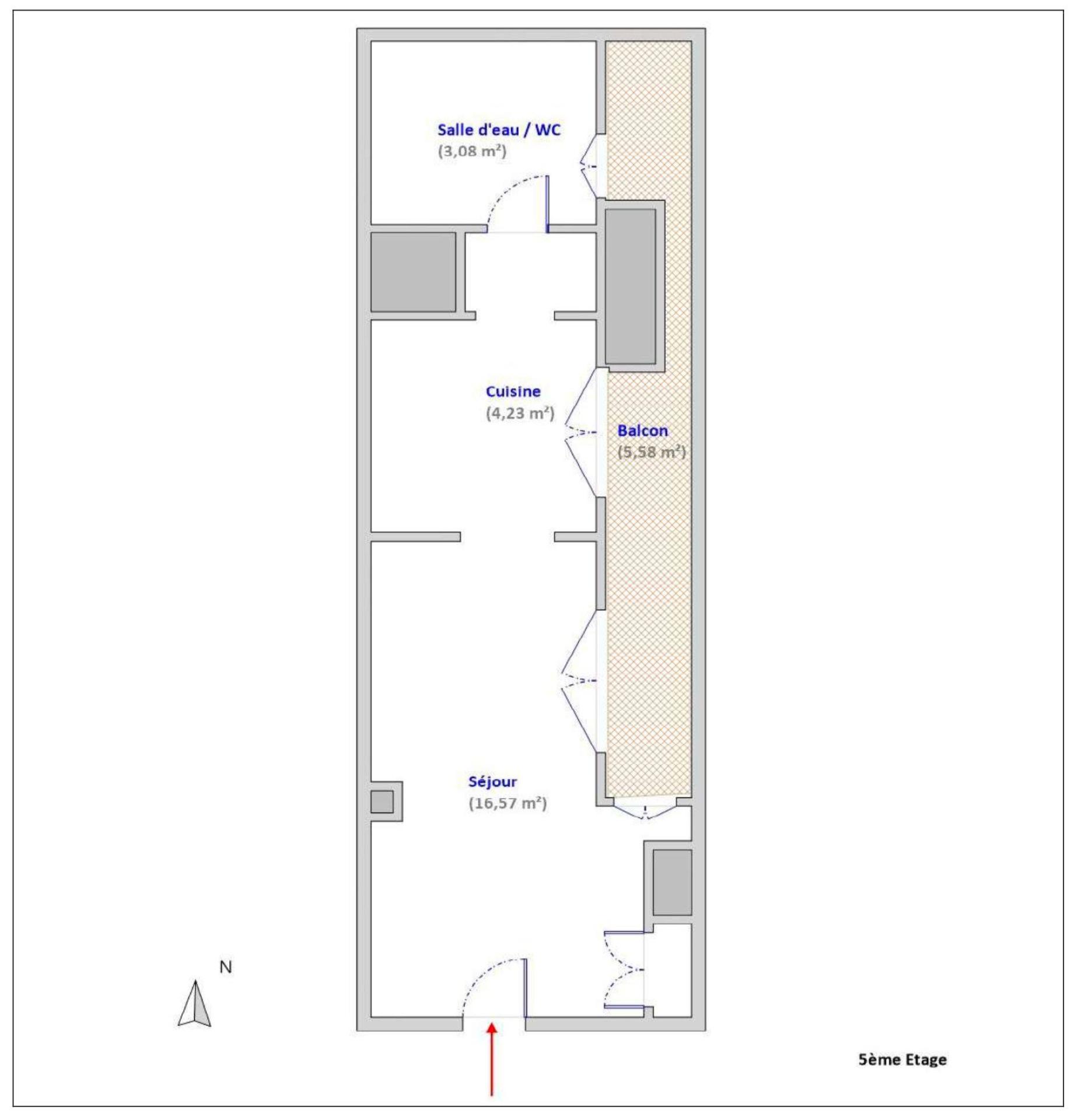 Cet appartement de 24 m² situé au 5ème étage se distingue par son agréable balcon de 5,6 m2 offrant une vue dégagée sur la cour intérieure, parfait pour profiter de moments de détente en extérieur.