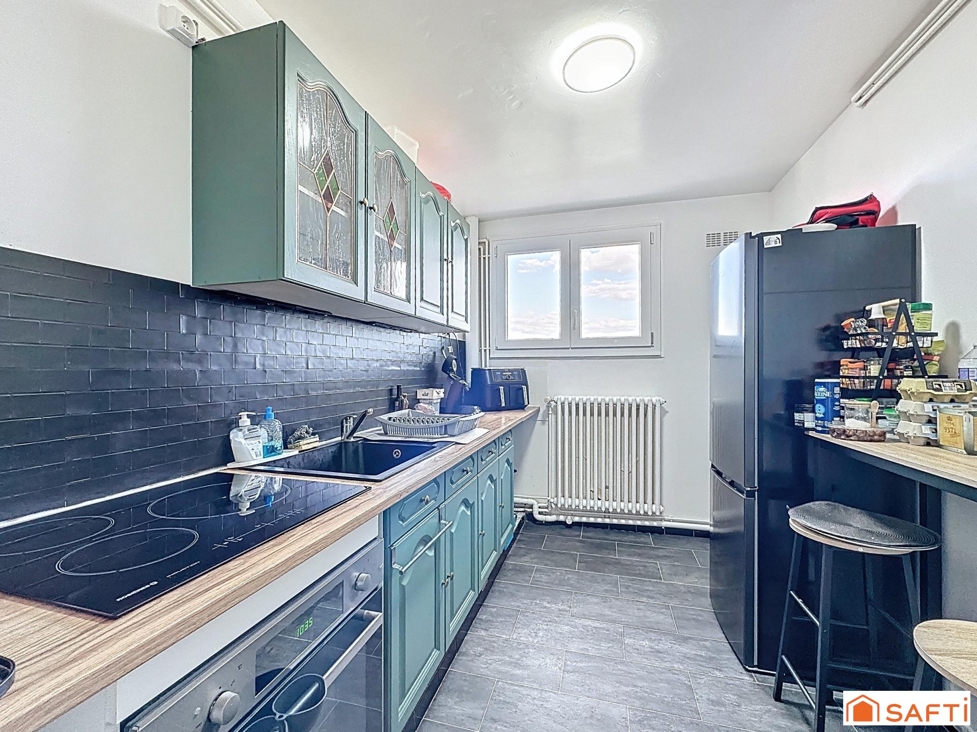 Cet appartement T5 d'environ 89 m² et situé au 1er étage d'une résidence sécurisée se compose d'une entrée donnant accès à une cuisine fonctionnelle aménagée équipée dotée d'un cellier, un salon-séjour lumineux donnant accès à un grand balcon, de 3 chambres offrant un espace de vie optimal, d'une salle d'eau, d'un wc séparé. Une cave, et un garage box fermé pour stationner en toute tranquillité, ainsi qu'une place de parking extérieure. Avec ce bien vous trouverez un ensemble complet et fonctionnel pour un cadre de vie pratique proche de toutes commodités.