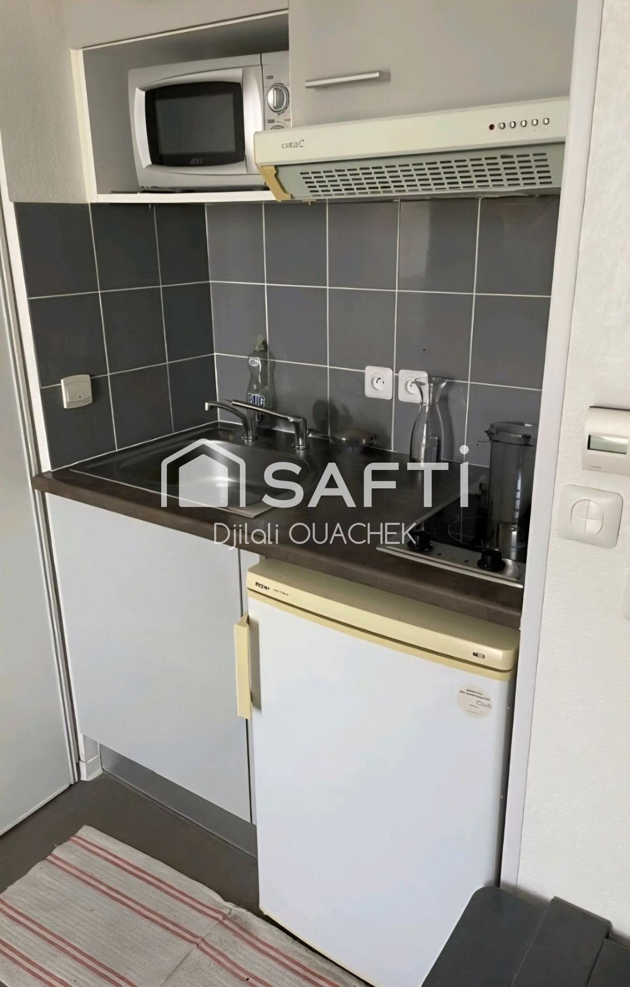 À vendre – Studio meublé de 18 m² dans une résidence étudiante de standing à Perpignan (quartier Moulin à Vent). Le logement comprend une pièce de vie avec kitchenette équipée, salle d’eau privative et mobilier complet. Moderne, fonctionnel et prêt à louer.