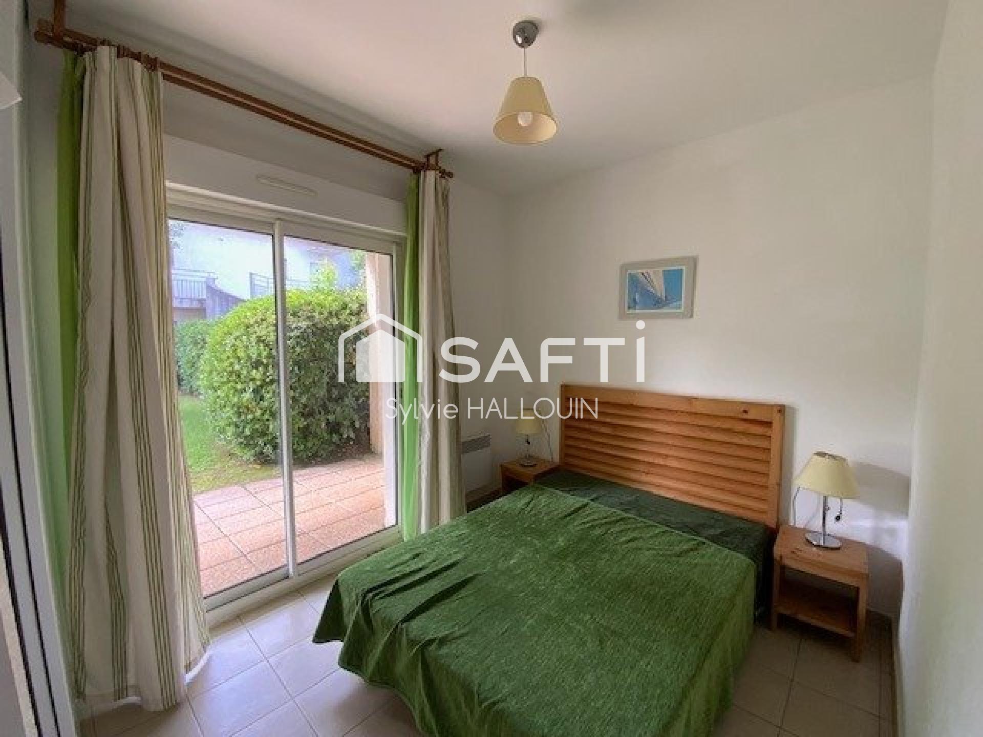 EXCLUSIF !! Magnifique appartement de 3 pièces au plus proche de la mer (44m²) en rez de jardin est situé dans une résidence "les pieds dans l'eau". Il est lumineux et fonctionnel. Il comprend un séjour - cuisine de 23.60 m² avec accès terrasse 21m2 et jardin de 98 m², 1 chambre avec grand placard, une seconde chambre de 9m², salle de bains, wc. Vendu non meublé (possibilité d'acheter l'ensemble des meubles)