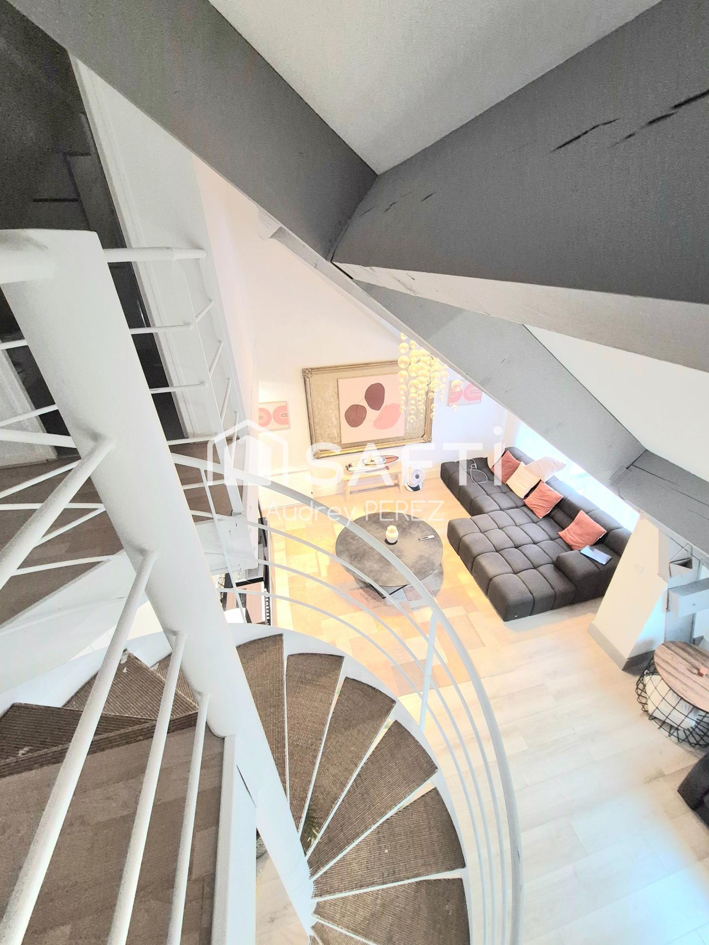 Vous avez une entrée puis un escalier vous emmènera sur un grand espace avec cuisine ouverte sur salle à manger et son salon cathédrale.