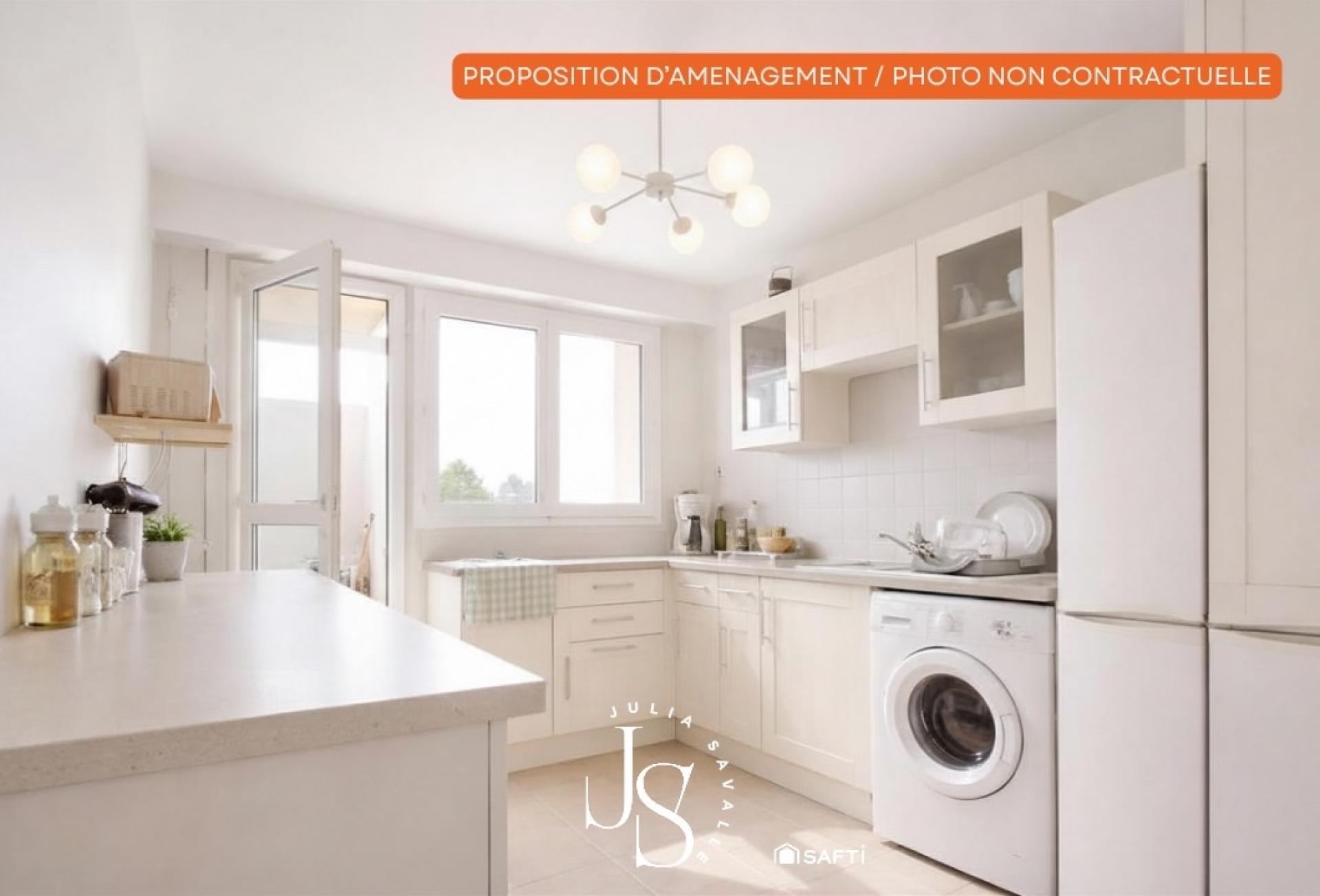 Côté pièces de vie, la cuisine et le séjour-salon, orientés plein sud, bénéficient d’une belle luminosité tout au long de la journée. Le séjour s’ouvre sur un agréable balcon avec vue sur de beaux espaces verts, parfait pour profiter des beaux jours.