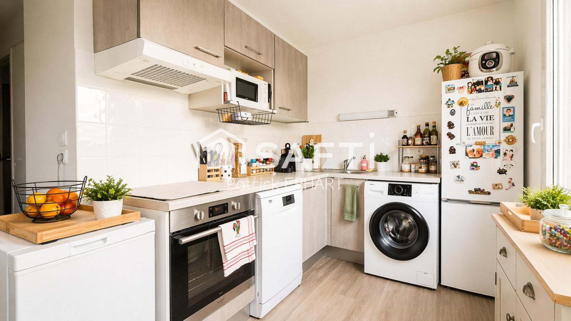L’appartement propose deux chambres confortables, une cuisine équipée fonctionnelle et un agencement harmonieux, pensé pour un quotidien agréable.