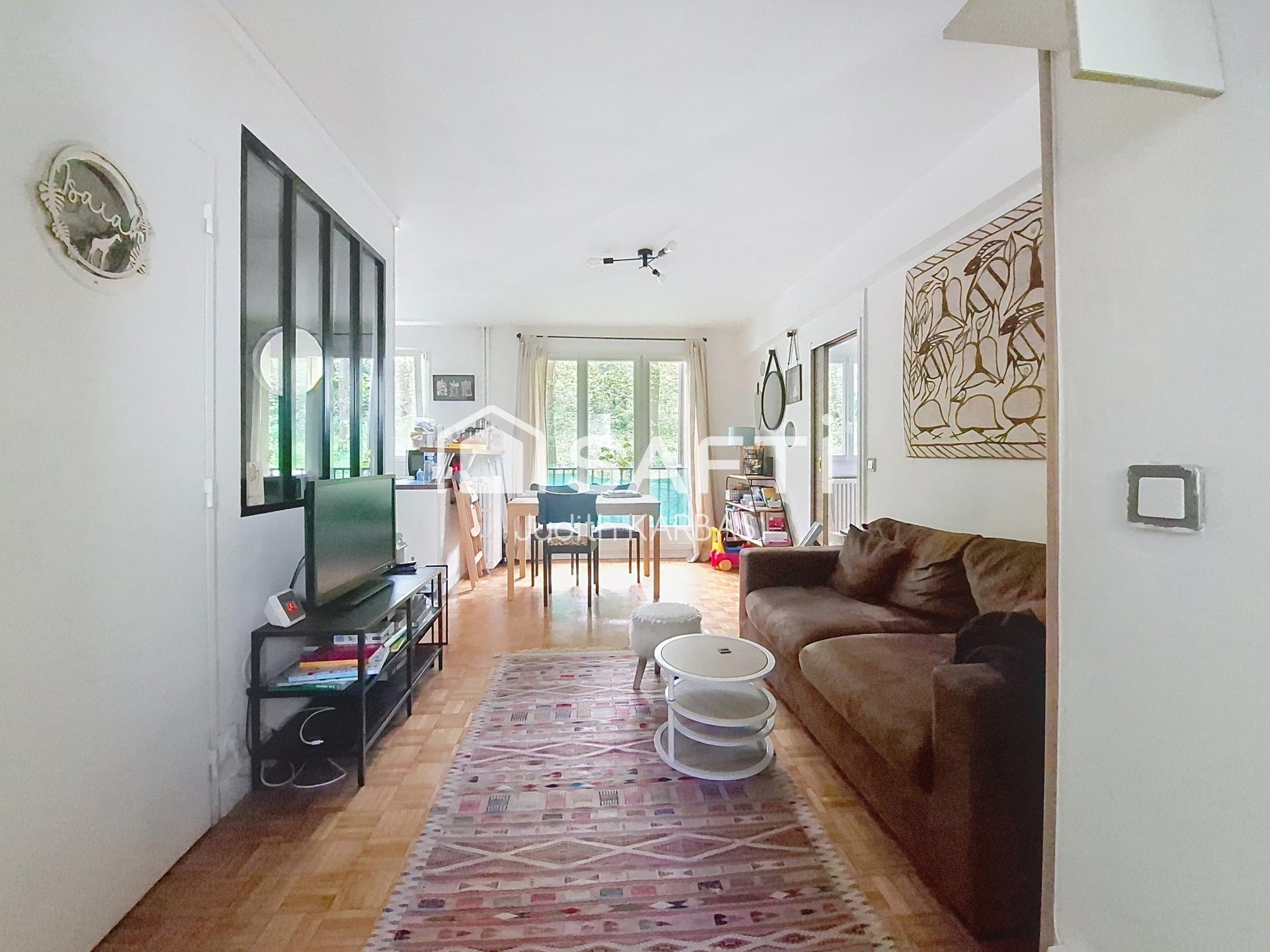 Cet appartement au rdc sans aucun vis à vis, et aux vues arborées est composé: