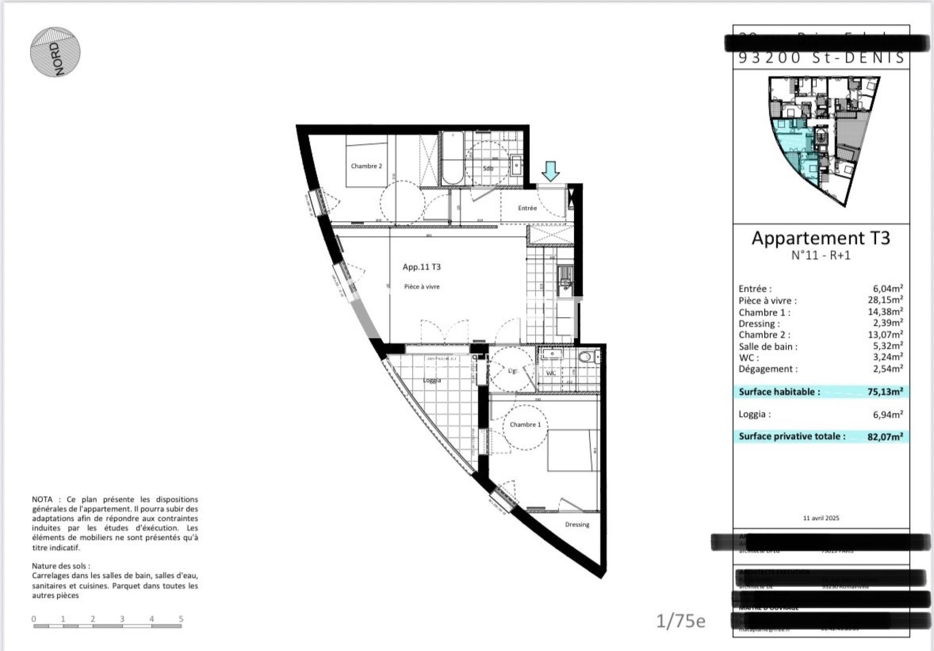 Cet appartement de type T3, situé à Saint-Denis (93200), d'une surface habitable de 75 m², se trouve au 1er étage et bénéficie d'une loggia offrant un espace supplémentaire. Il comprend une entrée, un dégagement, une pièce à vivre alliant séjour et cuisine, deux chambres dont une avec dressing, une salle de bain, et des toilettes.