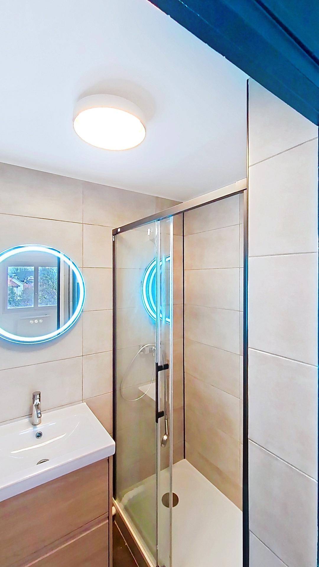 L’appartement offre une pièce principale lumineuse, un espace cuisine fonctionnel ainsi qu’une salle d’eau moderne.