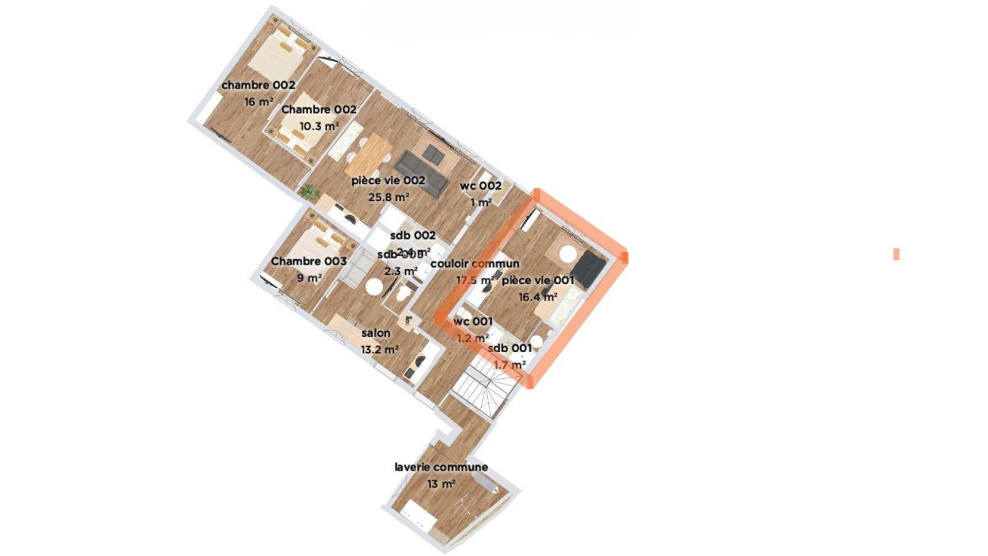 Aperçu de cet appartement à vendre de 1 pièce et 20 m²